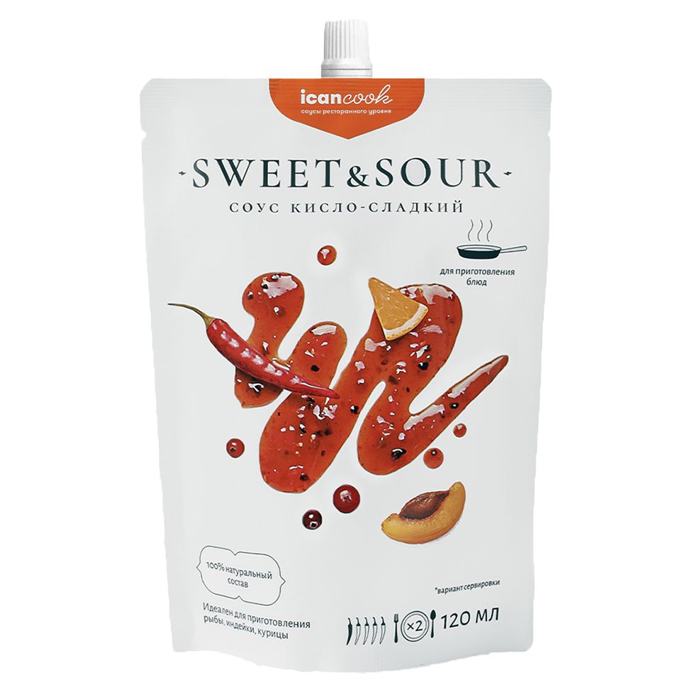 Кисло-сладкий соус Icancook создан только из натуральных ингредиентов — сладость достигается за счет использования спелых абрикосов и томатов без использования рафинированного сахара, а кислинка получается благодаря апельсиновому соку, при этом идеально сбалансированная кисло-сладость придает готовому блюду особенный насыщенный вкус. Объем: 120 мл (на 2 порции) Срок годности: 9 месяцев