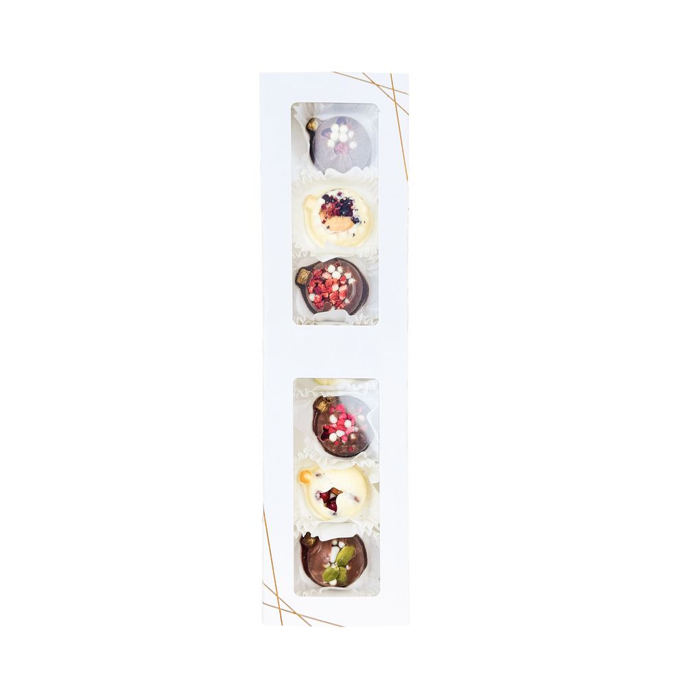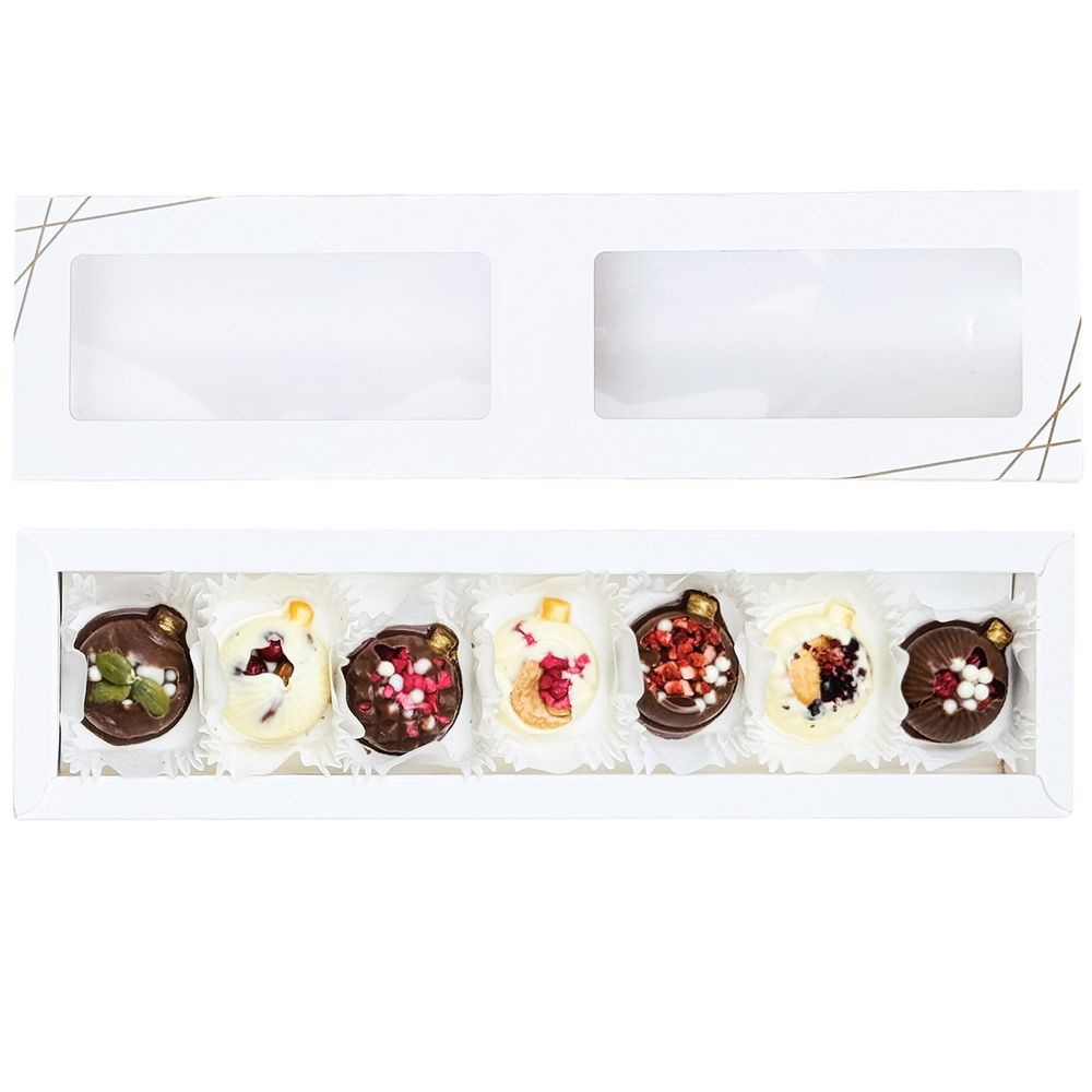 Набор включает шарики из молочного и белого шоколада с добавлением сублимированной малины, клубники и манго, кешью, миндаля, тыквенных семечек и воздушного риса. Прекрасное сочетание для праздничного настроения! Вес нетто: 50 г Срок годности: 12 месяцев