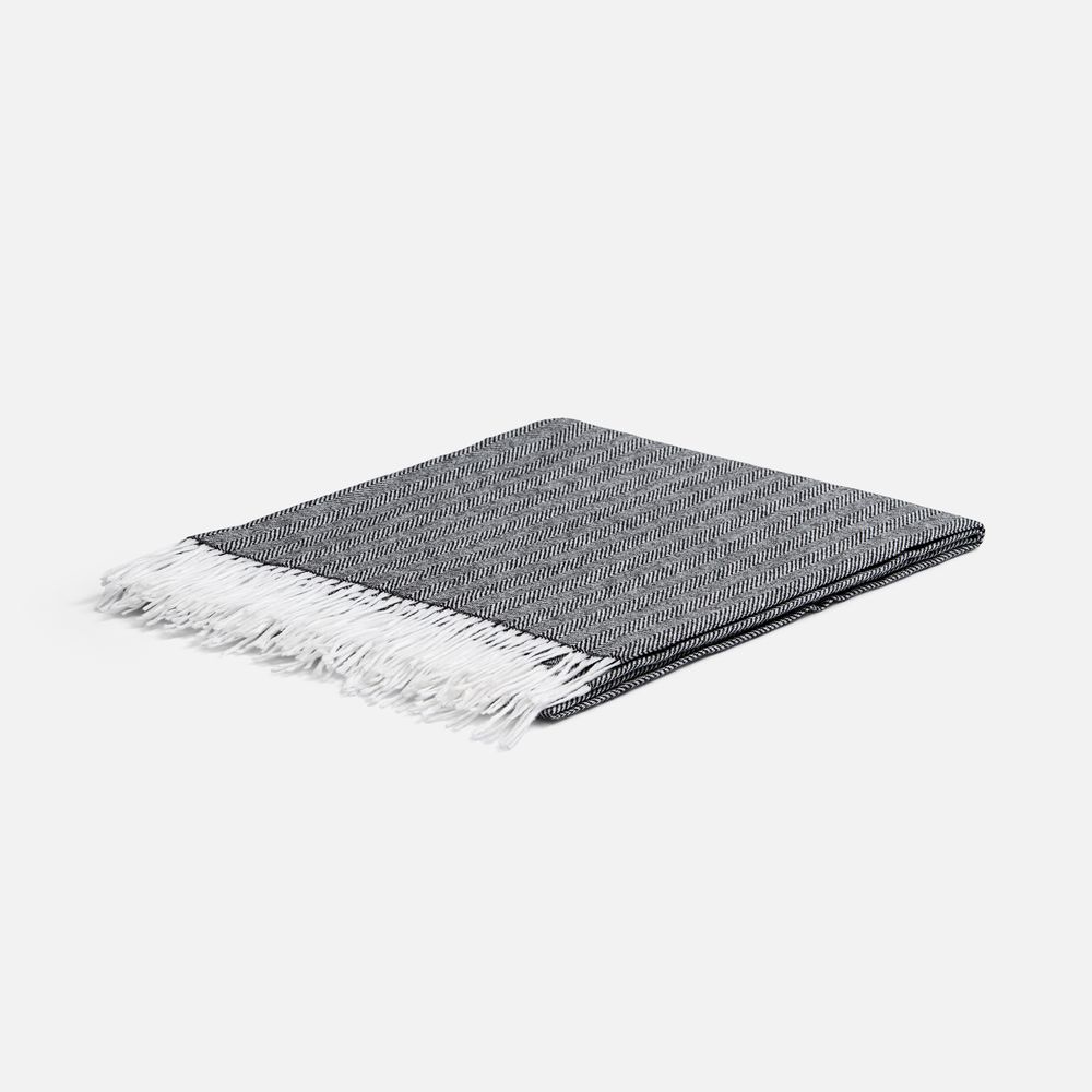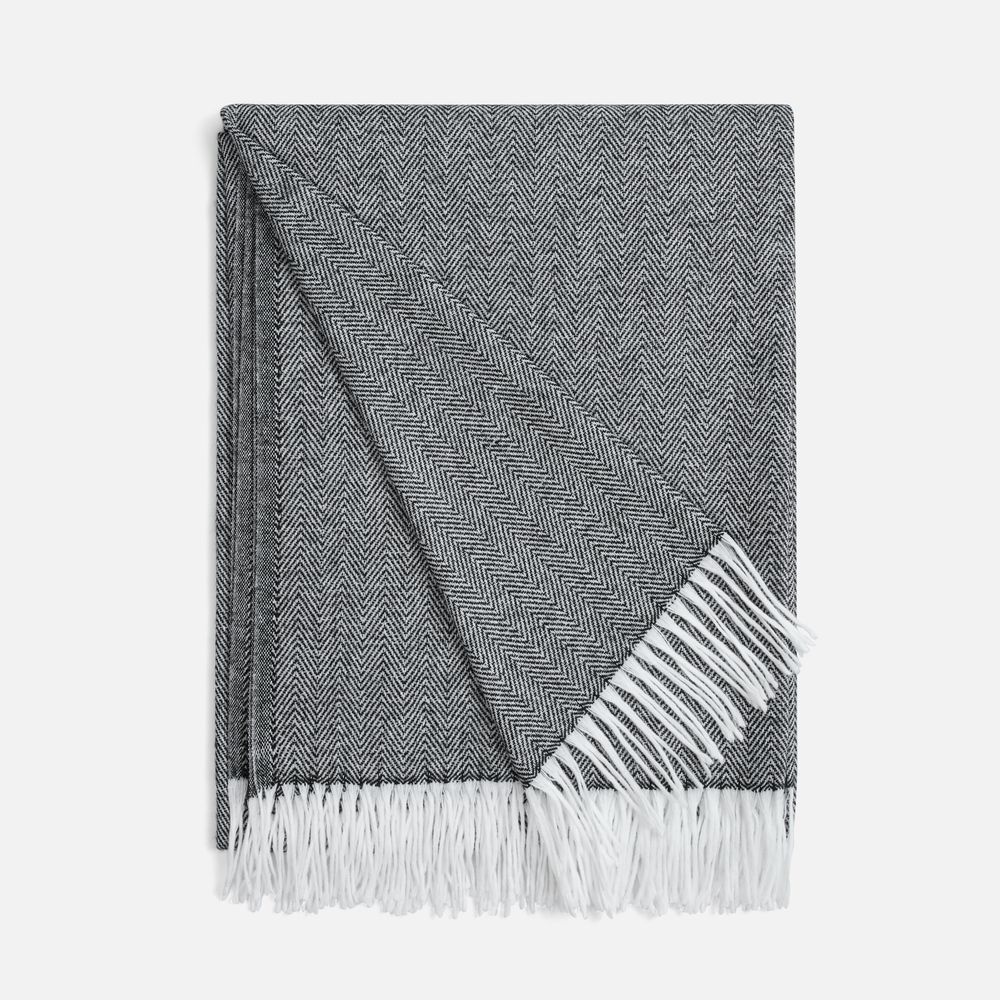 Классический рисунок «елочка» не слишком привлекает внимание, но в то же время добавляет изюминки. Смешанный состав пряжи продлевает срок службы и существенно облегчает уход за пледом.