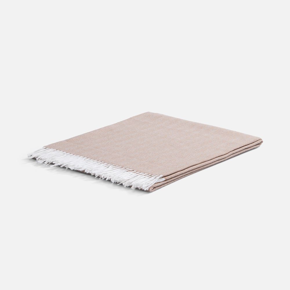 Классический рисунок «елочка» не слишком привлекает внимание, но в то же время добавляет изюминки. Смешанный состав пряжи продлевает срок службы и существенно облегчает уход за пледом.