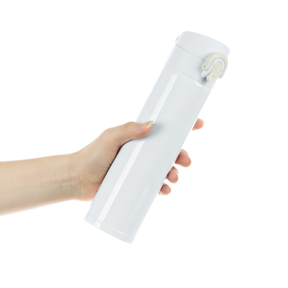 Термостакан Eimer в ровном цилиндрическом корпусе — эстетически приятная форма, на которую удобно делать круговое нанесение. Крышку с отщелкивающимся клапаном легко открыть одной рукой.