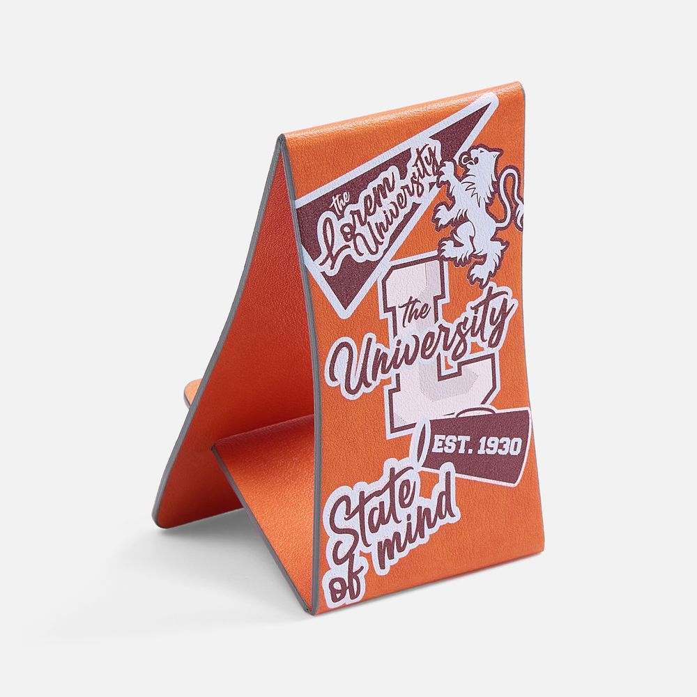 Складная подставка для телефона с вырубкой под шнур зарядного устройства. Выполнена из материала Petrus.