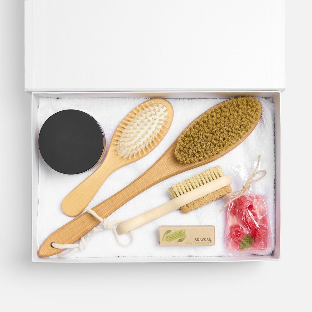 Набор Royal Retreat — роскошный и вдохновляющий набор, который поможет провести настоящий SPA-ритуал не выходя из дома. В нем есть все, что нужно для получения исключительно приятных ощущений: массажные щетки для тела и стоп, ароматная соль для ванны, нежное мыло, питательная помада и мягкое полотенце.