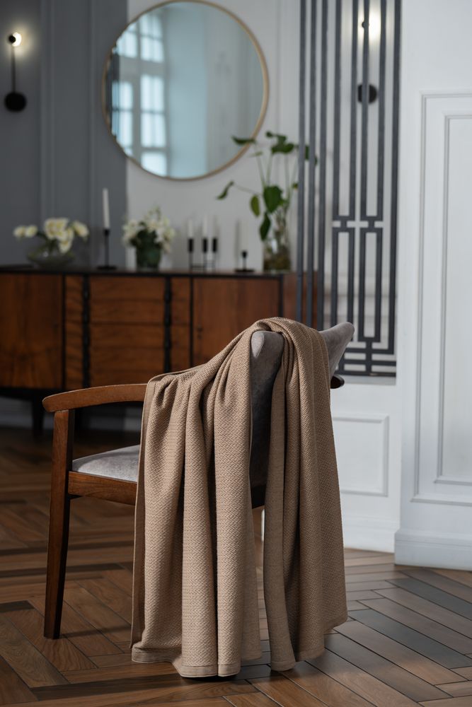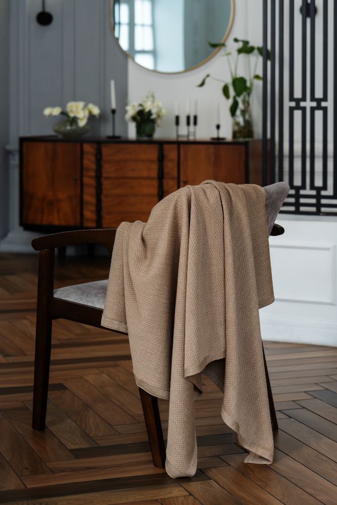 Легкий и мягкий плед Ornato выполнен из пряжи приглушенных оттенков, поэтому гармонично впишется в любой интерьер. Деликатный классический орнамент в виде мелких колосков делает изделие еще более нежным и воздушным визуально. Плед из полушерстяной пряжи, поэтому прекрасно согревает и неприхотлив в уходе. Поставляется в пакете с липким краем.