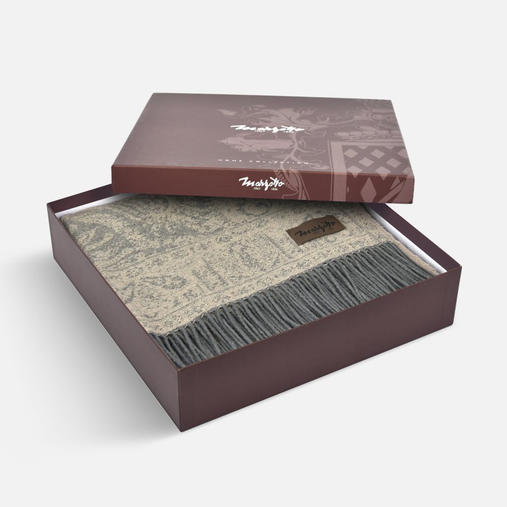 Элегантный плед Magnolia — идеальный подарок дорогому человеку или коллеге. Причудливый восточный узор смягчается неброской цветовой гаммой, а длинная бахрома логичным образом дополняет его роскошное винтажное настроение.