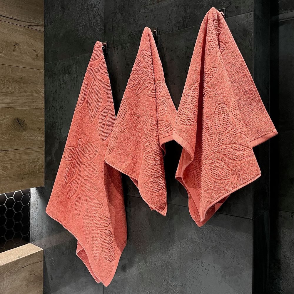 Махровые полотенца «Флора» из 100% хлопка с модным жаккардовым плетением и растительным рельефным рисунком станут украшением любой ванной комнаты. Полотенца хорошо поглощают влагу, необыкновенно мягкие, дарят комфорт в использовании.