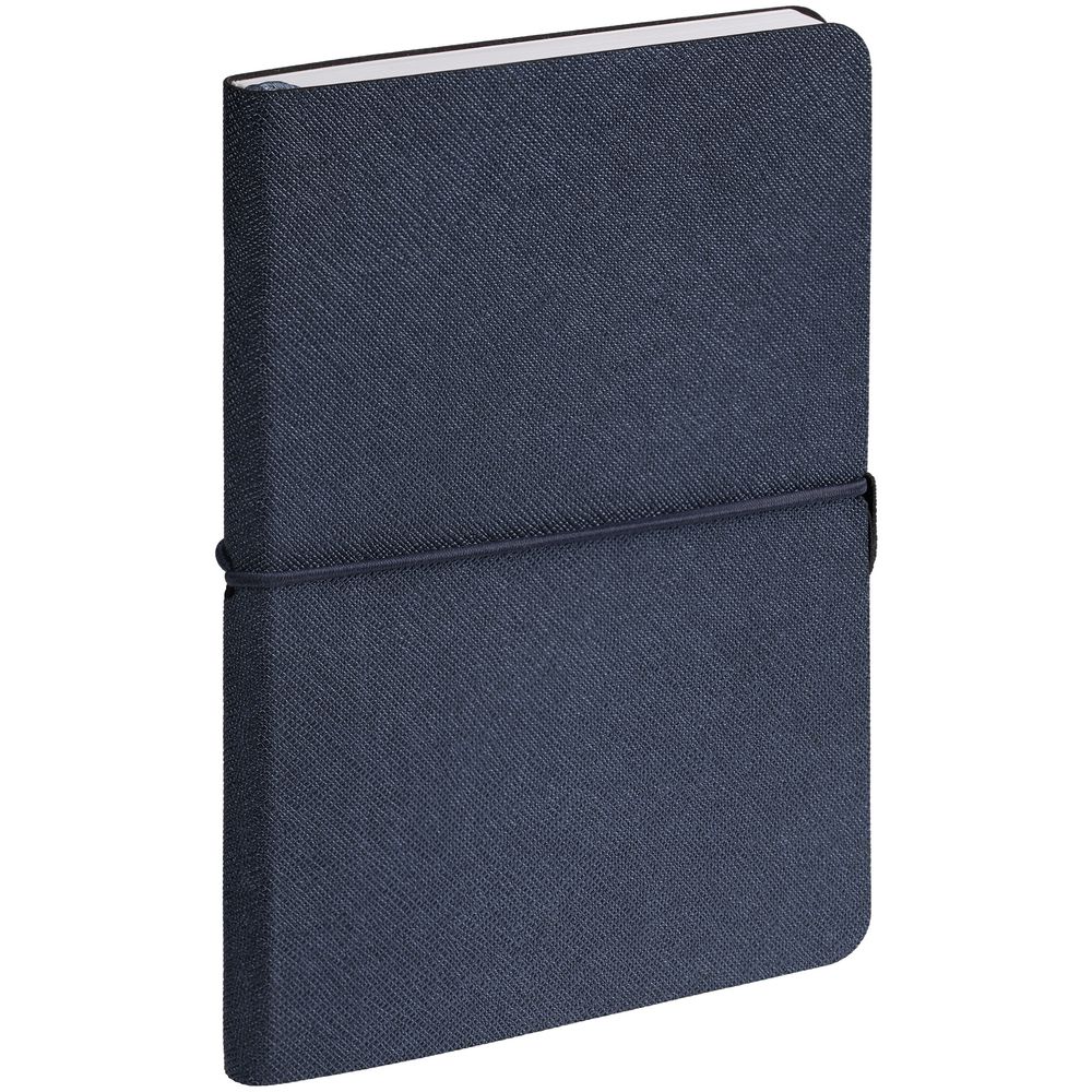 Блокнот с гибкой обложкой, выполнен из материала Saffian, синий НН. Дополнен ляссе в цвет обложки.