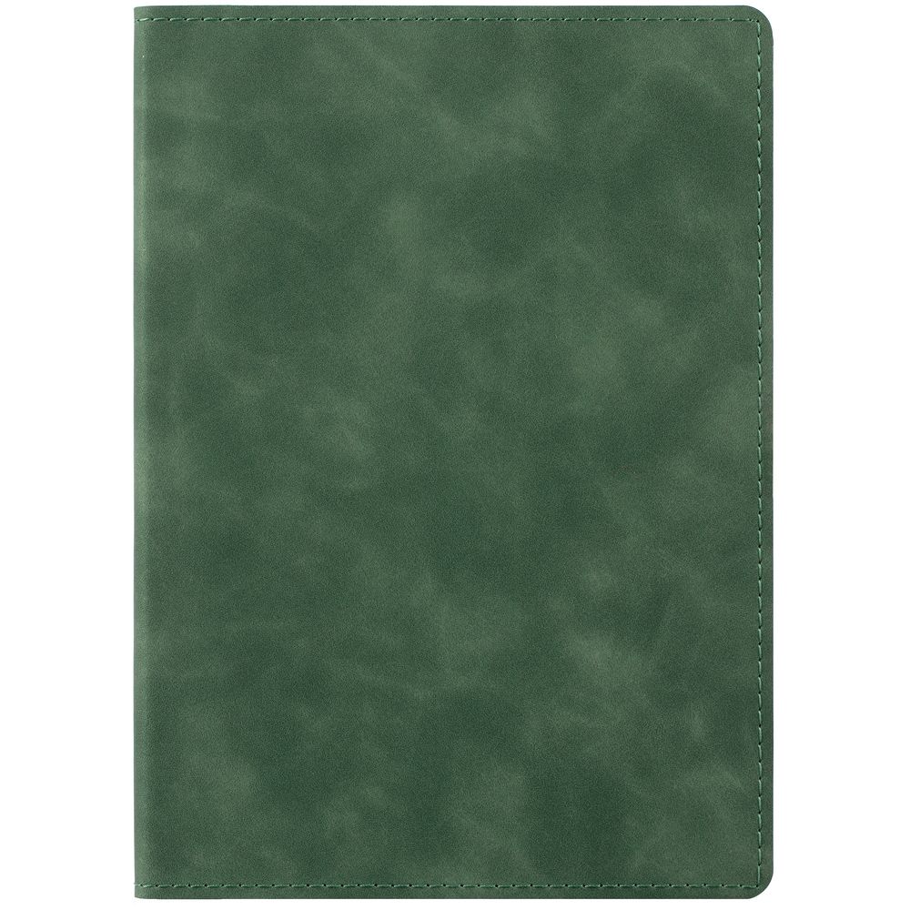 Ежедневник с гибкой обложкой, выполнен из материала Nubuck Touch, зеленый FF, дополнен ляссе темно-зеленого цвета.