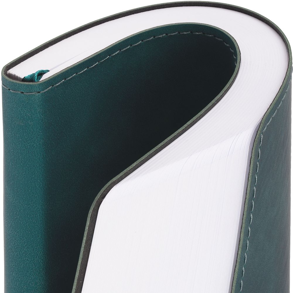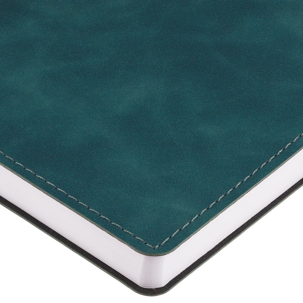 Ежедневник с гибкой обложкой, выполнен из материала Nubuck Touch, тёмно-зелёный VV, дополнен ляссе в цвет обложки.
