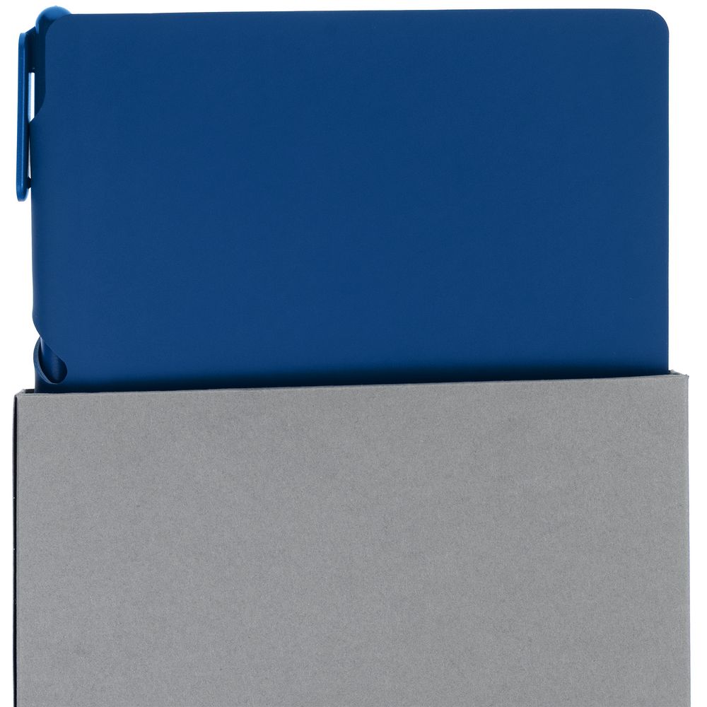 Удобный ежедневник с гибкой обложкой и местом под ручку в корешке, миниатюрная ручка из переработанного пластика и компактная самосборная коробка — простые составляющие полезного делового набора.