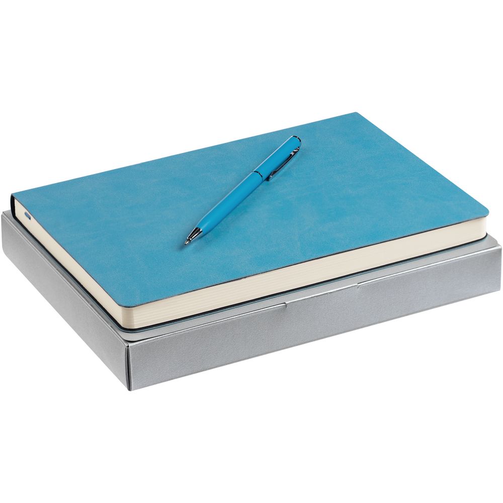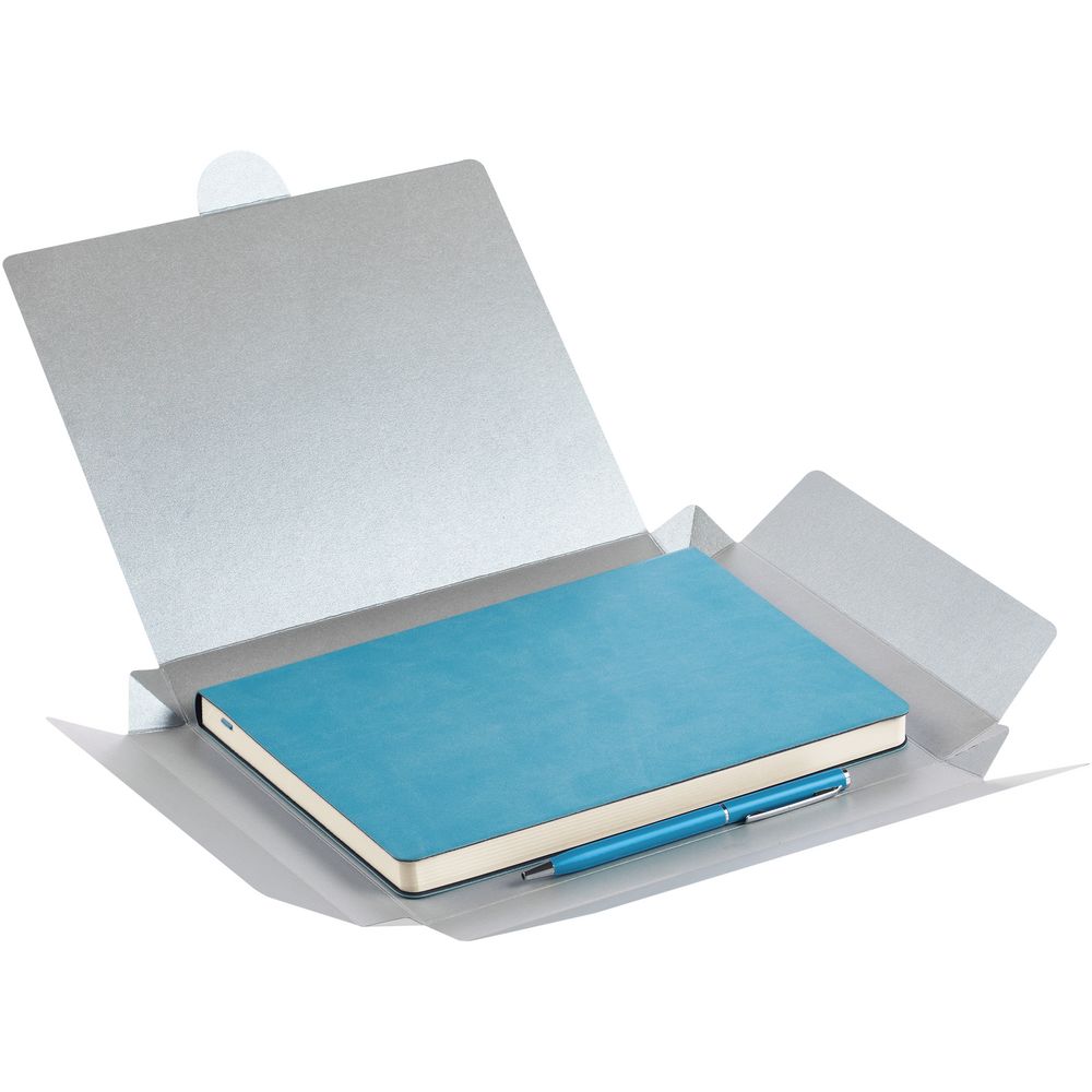 Недатированный ежедневник с гибкой обложкой из материала Latte с ляссе в цвет обложки, а также ручка в тон — в подарочной коробке из дизайнерского картона.