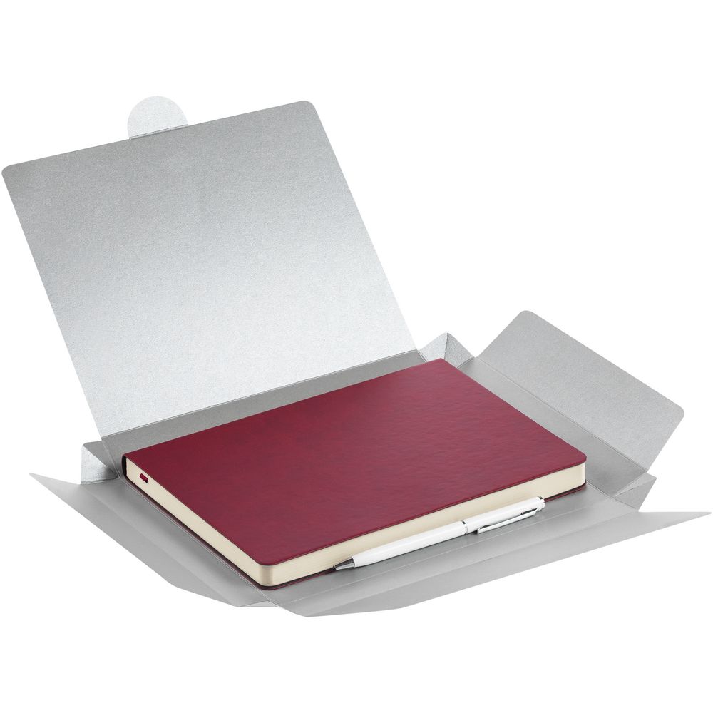 Недатированный ежедневник с гибкой обложкой из материала Latte с ляссе в цвет обложки, а также ручка в тон — в подарочной коробке из дизайнерского картона.