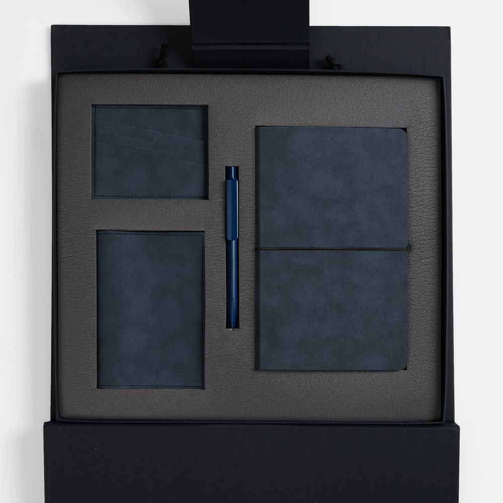 Набор с ежедневником и персональными аксессуарами из коллекции Nubuk в подарочной коробке с ручками одинаково хорошо исполнит роль как делового, так и личного подарка.