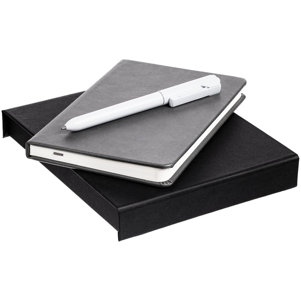 блокнот - искусственная кожа; ручка - пластик; коробка - переплетный картон