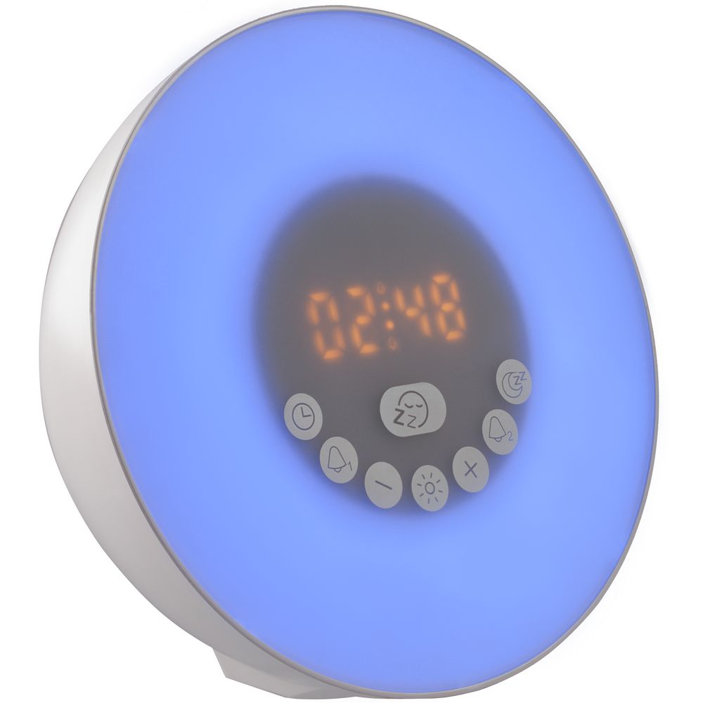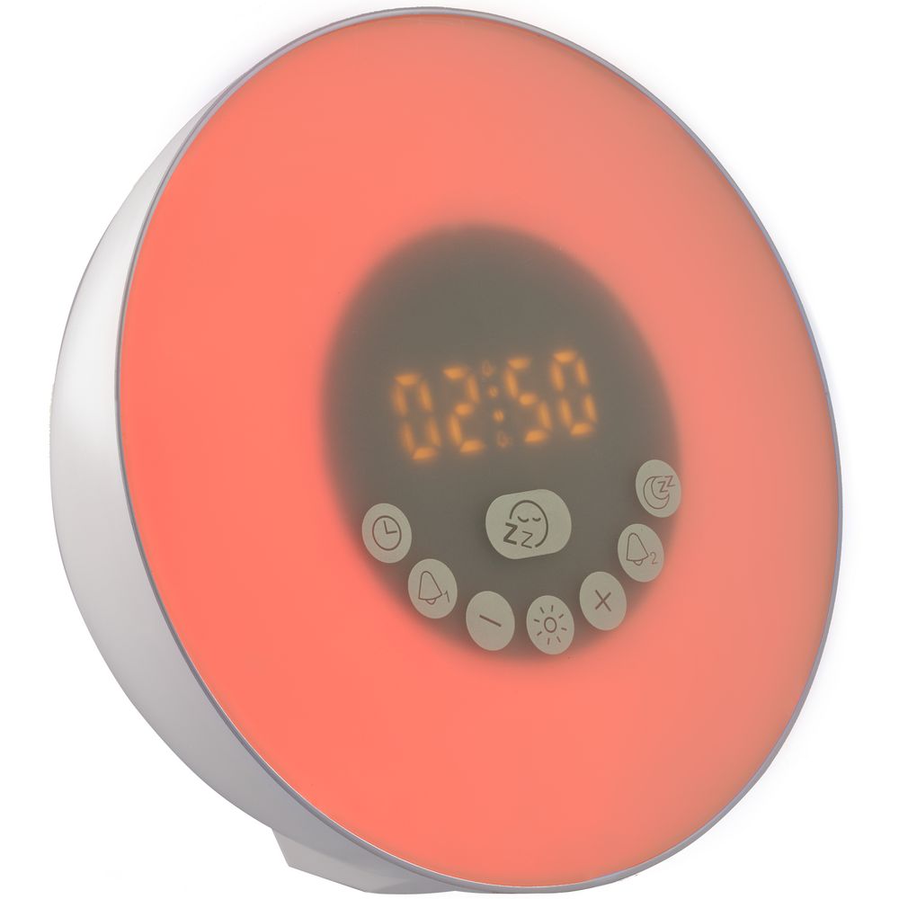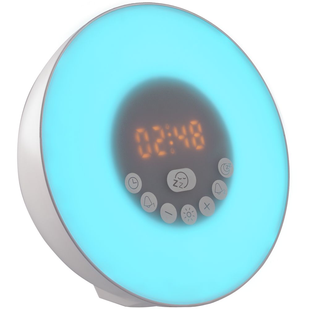 Лампа активируется за некоторое время до настроенного будильника и постепенно увеличивает яркость вплоть до момента, когда вы планируете окончательно проснуться. Эффект мягкого пробуждения можно дополнить звуками природы: шумом волн или пением птиц.