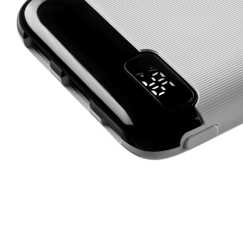 Компактный аккумулятор со входными разъемами Type-C и Micro USB, а также удобным индикатором заряда в процентах.