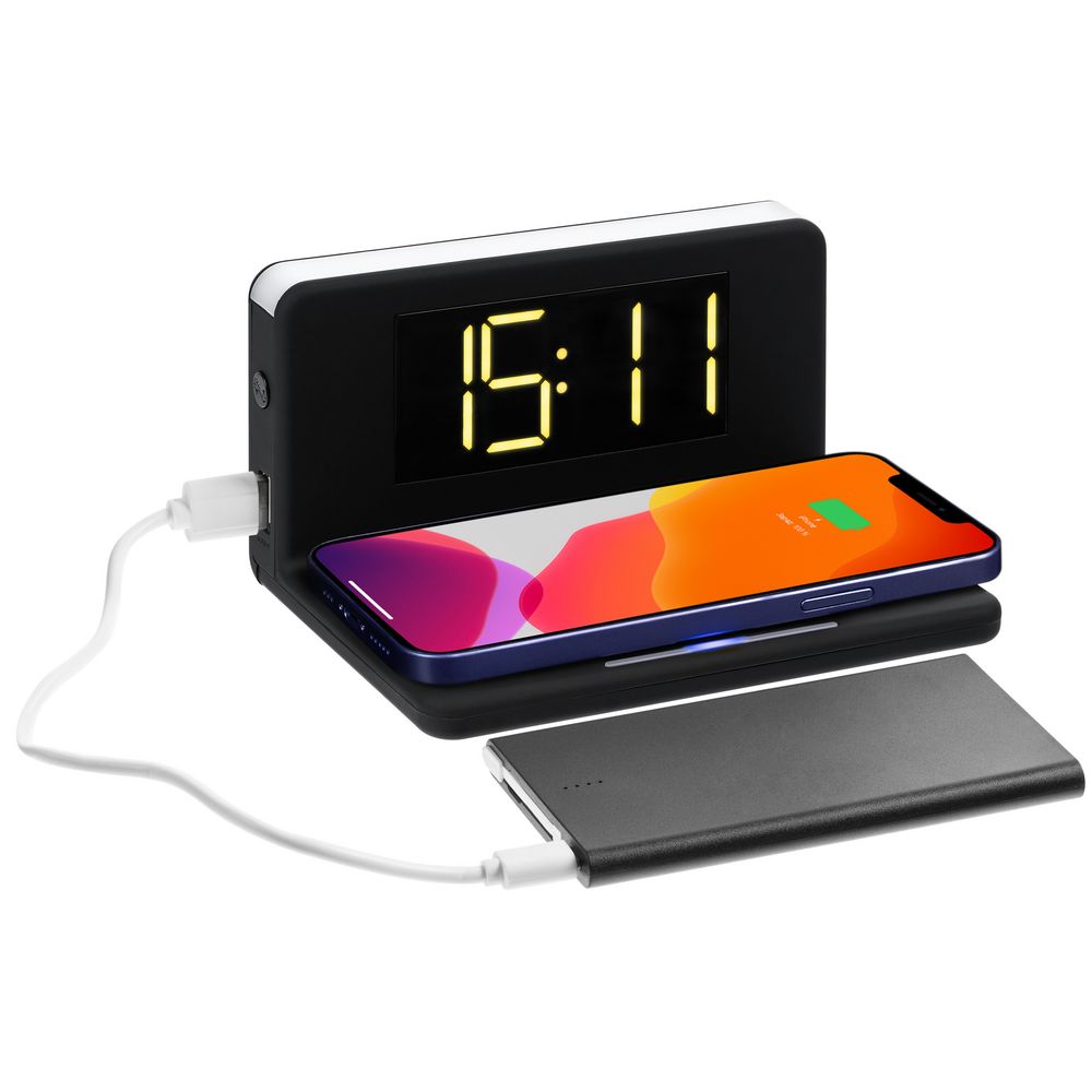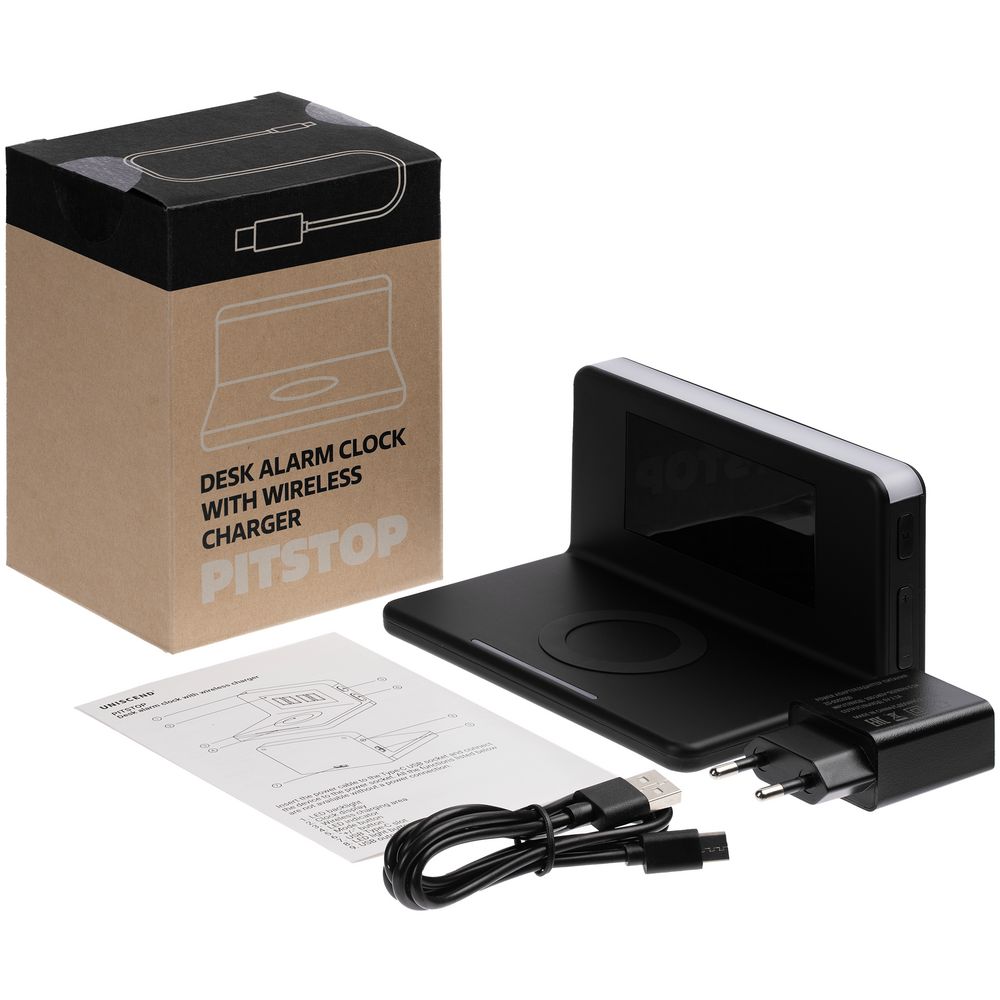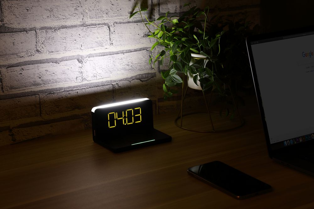 Pitstop — многофункциональное устройство, которое сочетает в себе функции настольных часов, будильника, станции для беспроводной и проводной зарядки устройств и ночника.