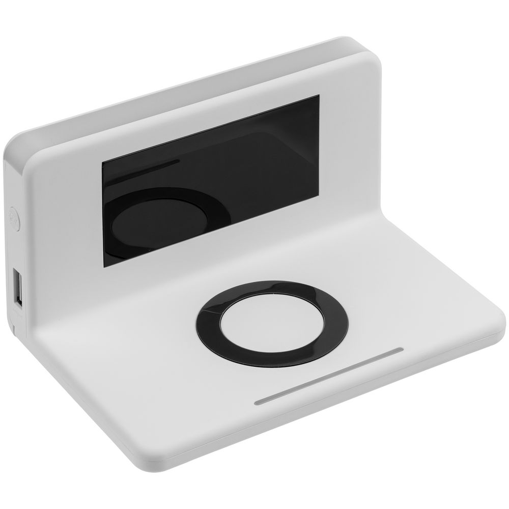 Зарядная станция совместима со всеми мобильными устройствами, поддерживающими технологию беспроводной зарядки Qi. Зарядка начнется автоматически при размещении смартфона на индукционной площадке. USB-порт для проводной зарядки расположен в торце устройства.