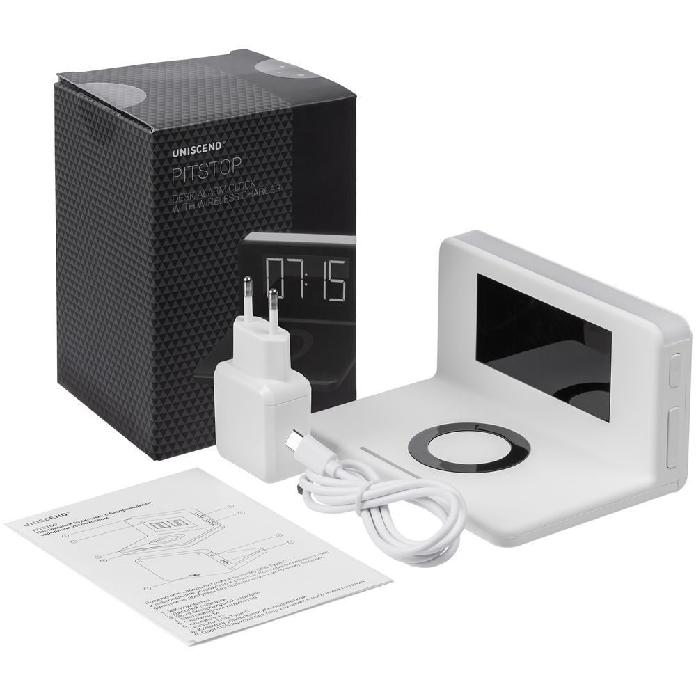 Pitstop — многофункциональное устройство, которое сочетает в себе функции настольных часов, будильника, станции для беспроводной и проводной зарядки устройств и ночника.