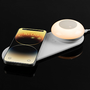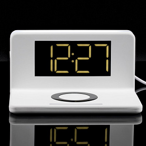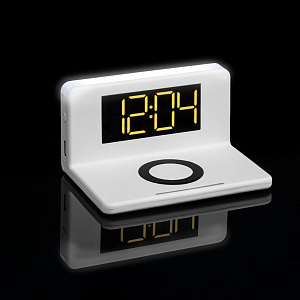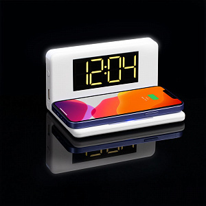 • Станция беспроводной зарядки с часами и подсветкой GlobeBee, белая