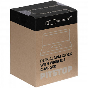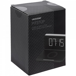 • Часы настольные с беспроводным зарядным устройством Pitstop, черные