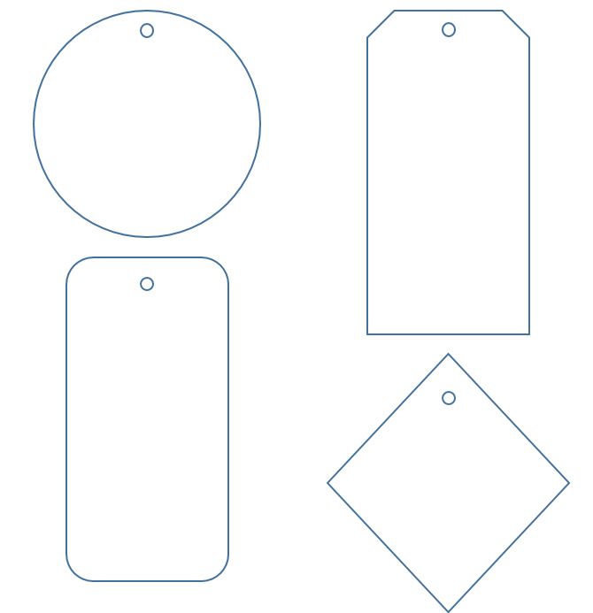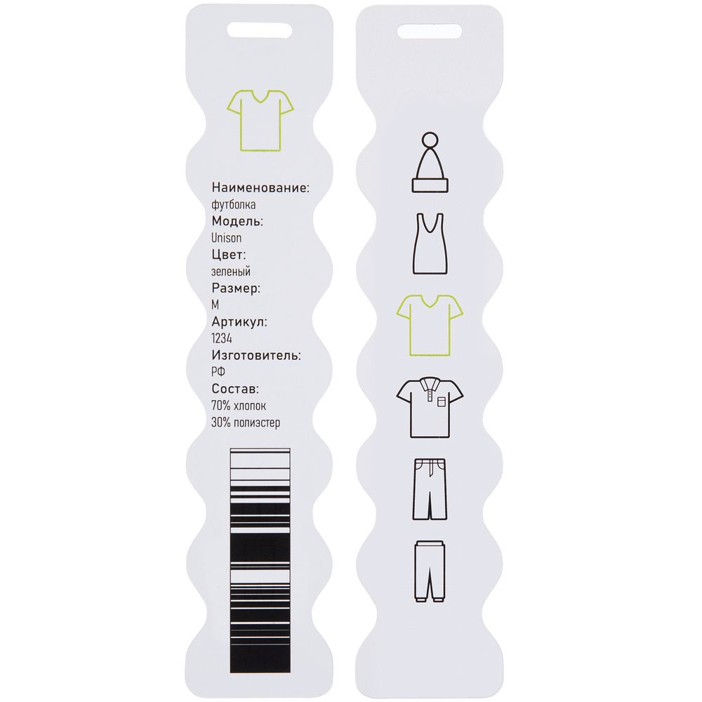 Для удобства крепления можно добавить круглые или овальные отверстия внутри этикетки. Минимальный диаметр отверстия 4 мм