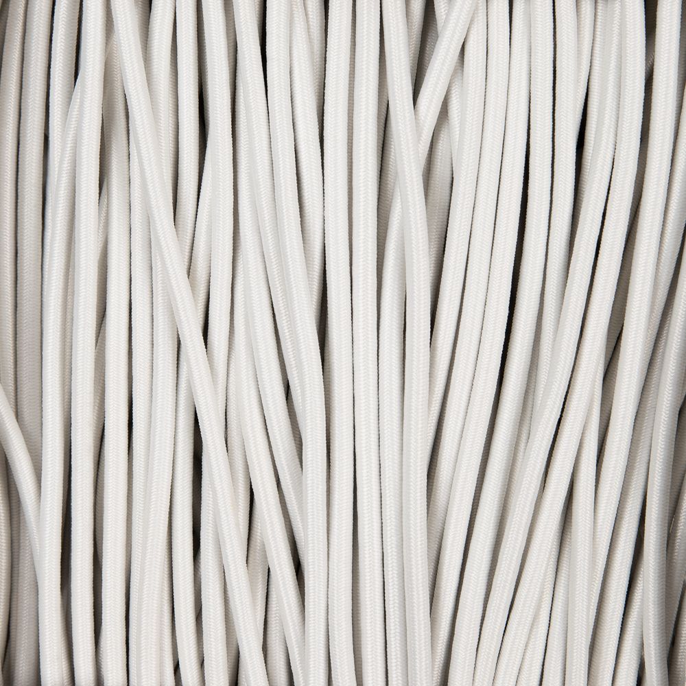 Резинка представляет собой пучок латексных нитей с внешней полиэфирной оплеткой. Такая конструкция обеспечивает плавное растяжение и защищает резинку от разрыва и повреждений.
