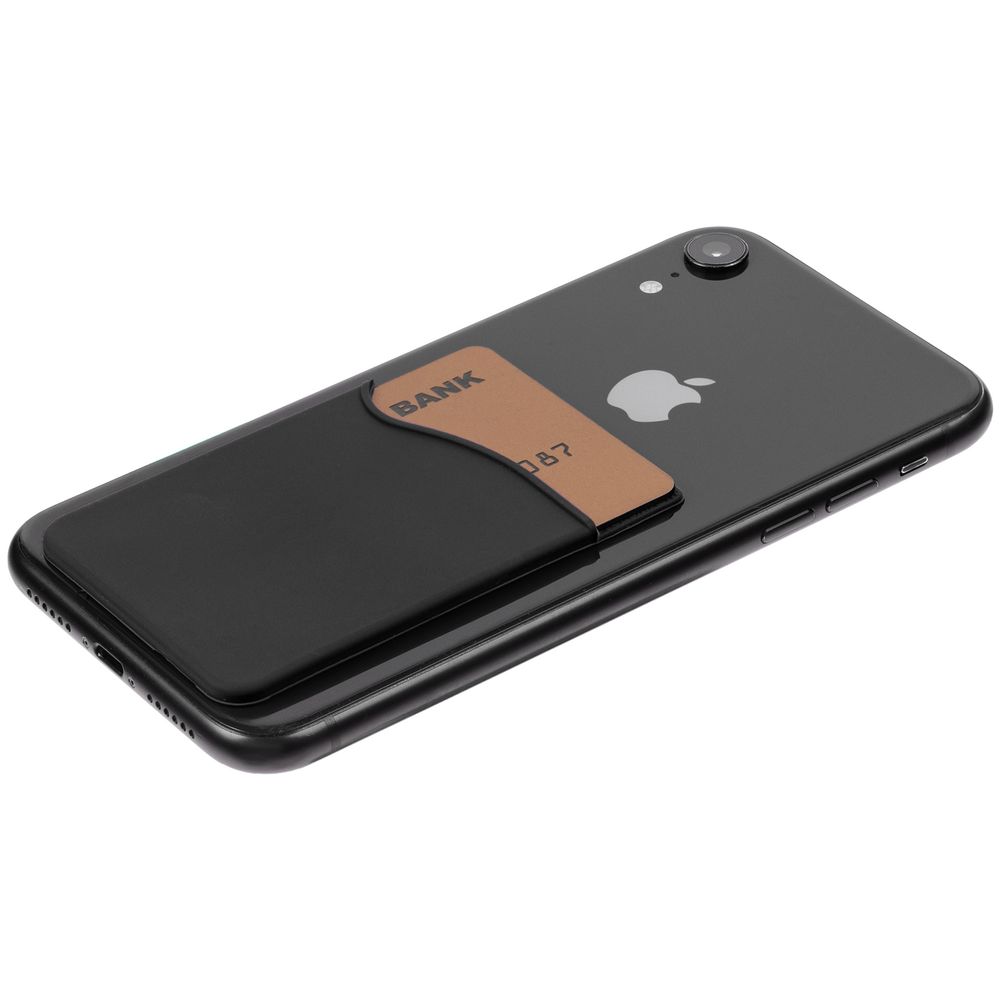 Крепится на оборотную сторону телефона с помощью двустороннего скотча.