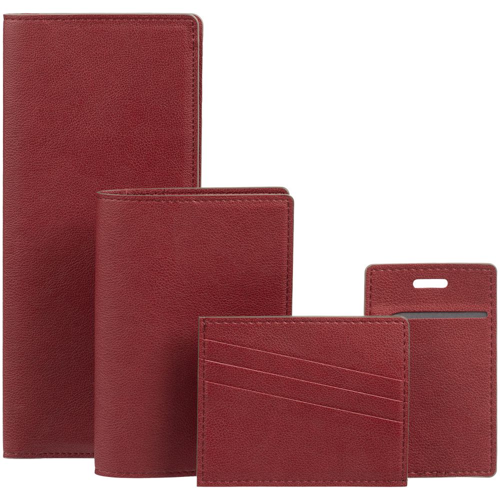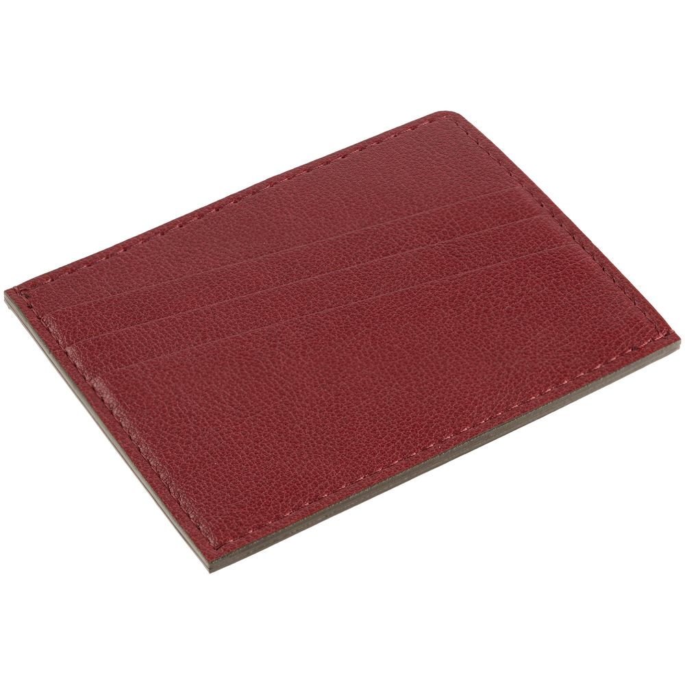 Чехол выполнен из материала Petrus, красный РР, дополнен окрашенным срезом края и внутренним карманом из серого картона. Имеет 4 отделения для кредитных карт и 1 отделение для купюр.