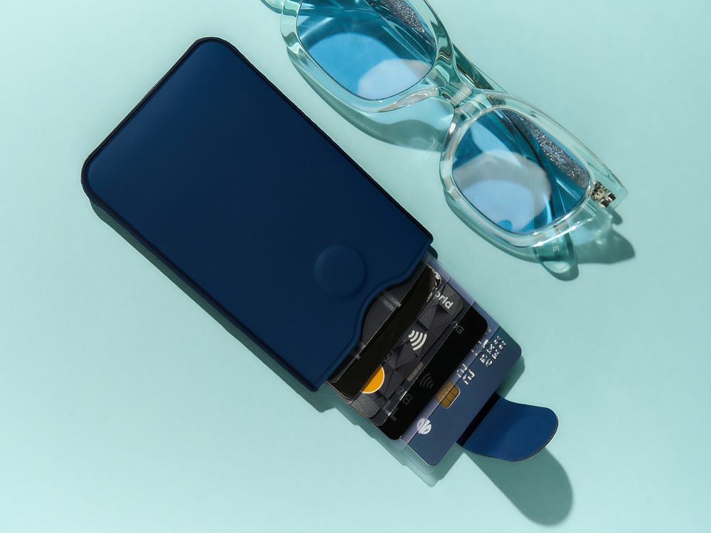 Благодаря выдвижному механизму, потянув за хлястик, можно с легкостью отыскать нужную карту. Магнит на хлястике надежно защитит содержимое.