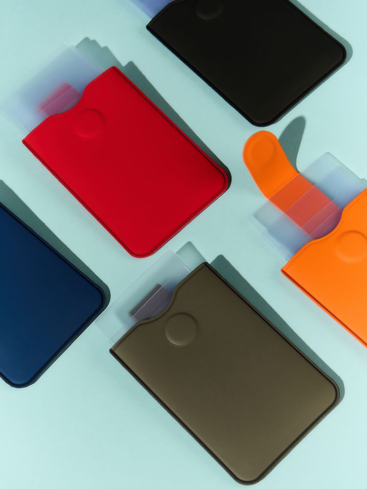 Чехол с выдвижным механизмом на 5 карточек и кармашком на 1 карточку, закрывается на магнит.