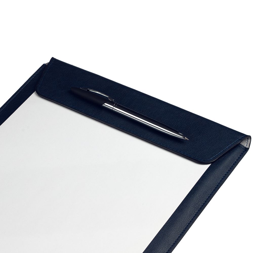В папку помещается до 130 листов ф.А4. Папка-планшет для бумаг с магнитным клапаном, выполнена из материала Petrus, темно-синий ХХ, внутри серый велюр.