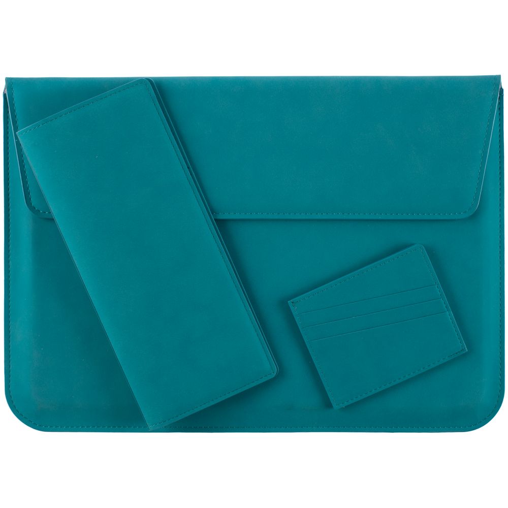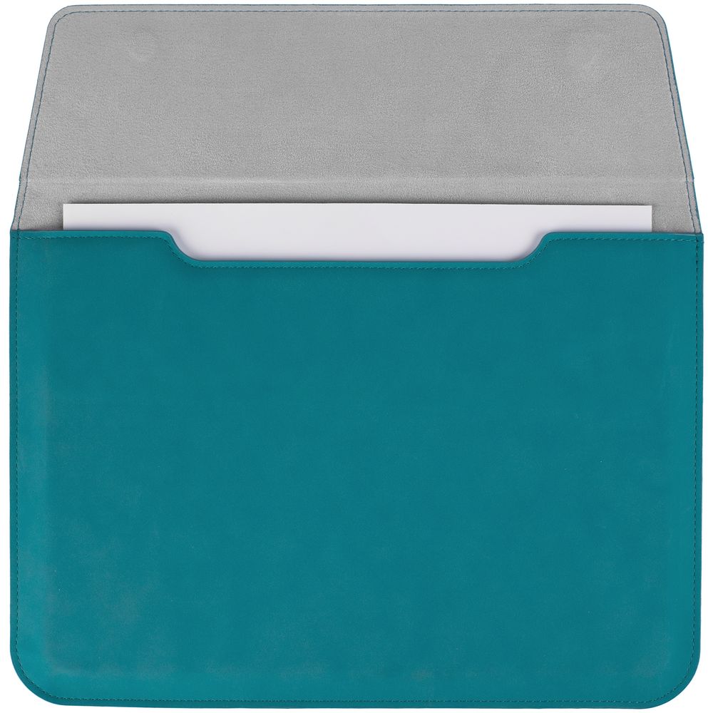 Чехол для ноутбука с диагональю до 13", выполнен из материала Nubuck, цвет морской волны II, внутри серый велюр. Можно использовать в качестве папки для бумаг.