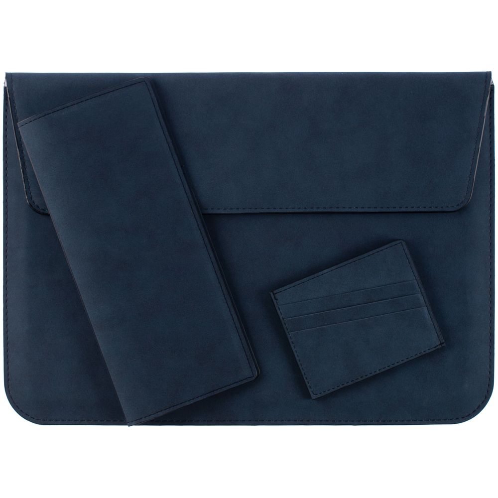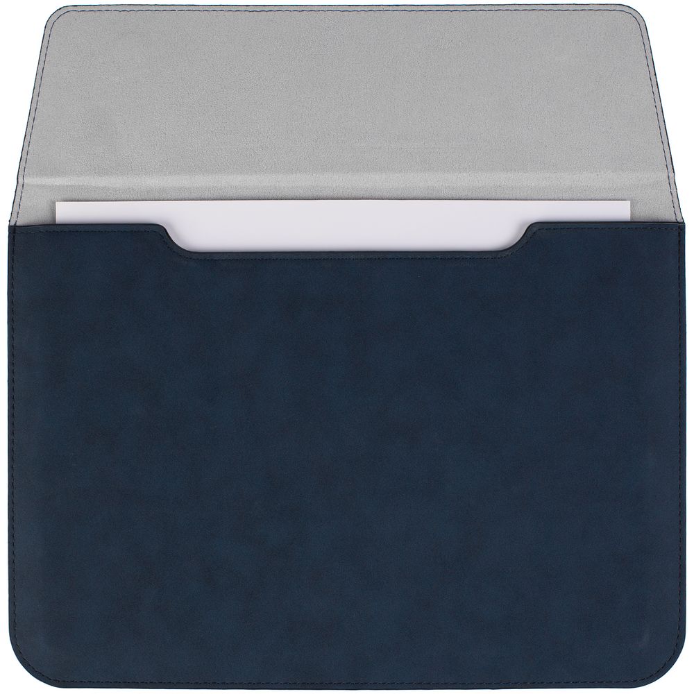 Чехол для ноутбука с диагональю до 13", выполнен из материала Nubuck, темно-синий ХХ, внутри серый велюр. Можно использовать в качестве папки для бумаг.