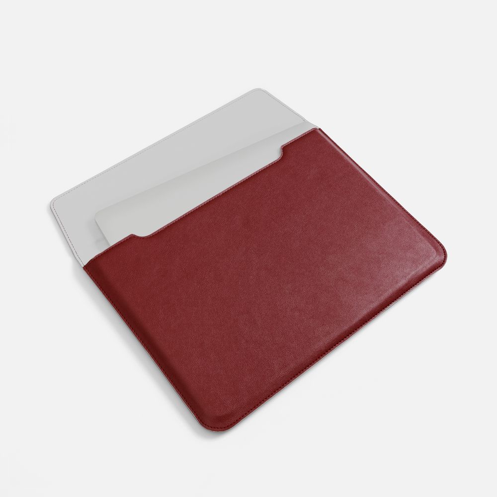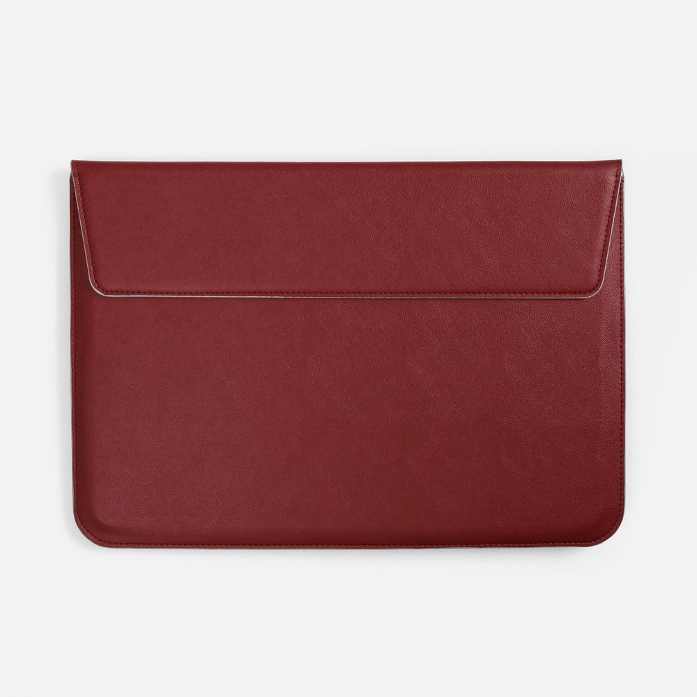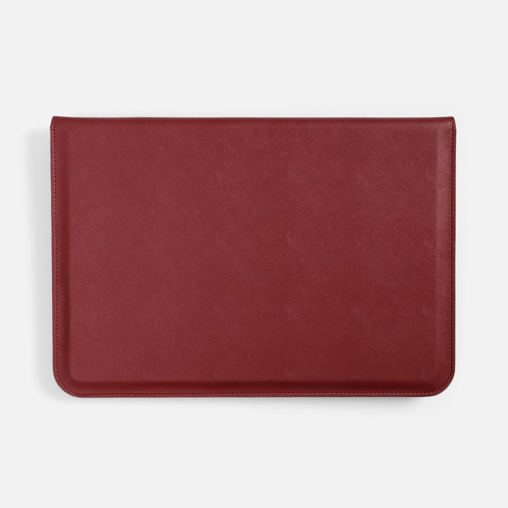 Чехол для ноутбука с диагональю до 15,6 выполнен из материала Petrus, красного цвета, дополнен окрашенным срезом края серого цвета. Можно использовать в качестве папки для бумаг. Кланан на магните.