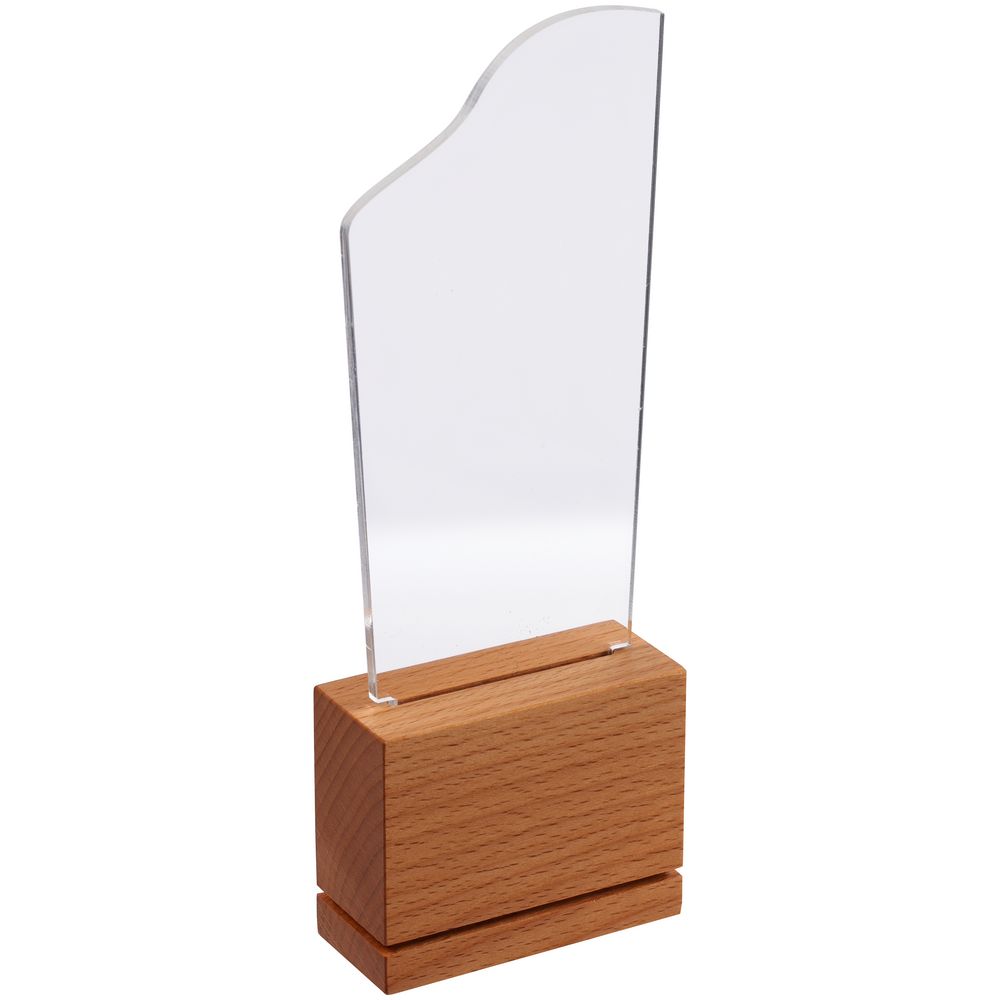 Стела New Tribute — это массивное основание из бука с гладкой фактурой и тонкая прозрачная вставка из акрила. Идеальный баланс устойчивости и легкости важен не только для создания награды привлекательной формы, но и для достижения результата, который этой наградой будет отмечен. Внимание! При печати желательно использовать антистатик для акрила. Не рекомендуем протирать награды спиртом перед нанесением: акрил будет трескаться. Акриловая часть вынимается для нанесения логотипа. Поставляется в индивидуальной транспортной коробке.