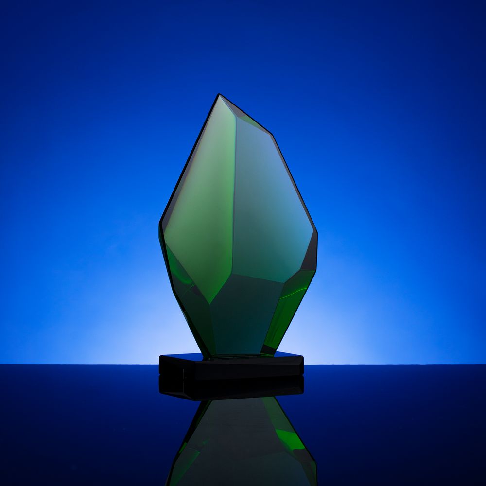 Эта стела-кристалл с легкостью поместится на ладони и подарит бурю положительных эмоций при награждении! Оригинальные стелы Cristallino напоминают эстетичные обломки настоящих кристаллов или минеральных камней, притягательных в своей уникальности и естественной простоте. Благодаря материалу — премиальному стеклу К9 — и особой технике окрашивания рождается оптический эффект: свет преломляется сквозь цветные грани, делая всю награду живой и яркой.