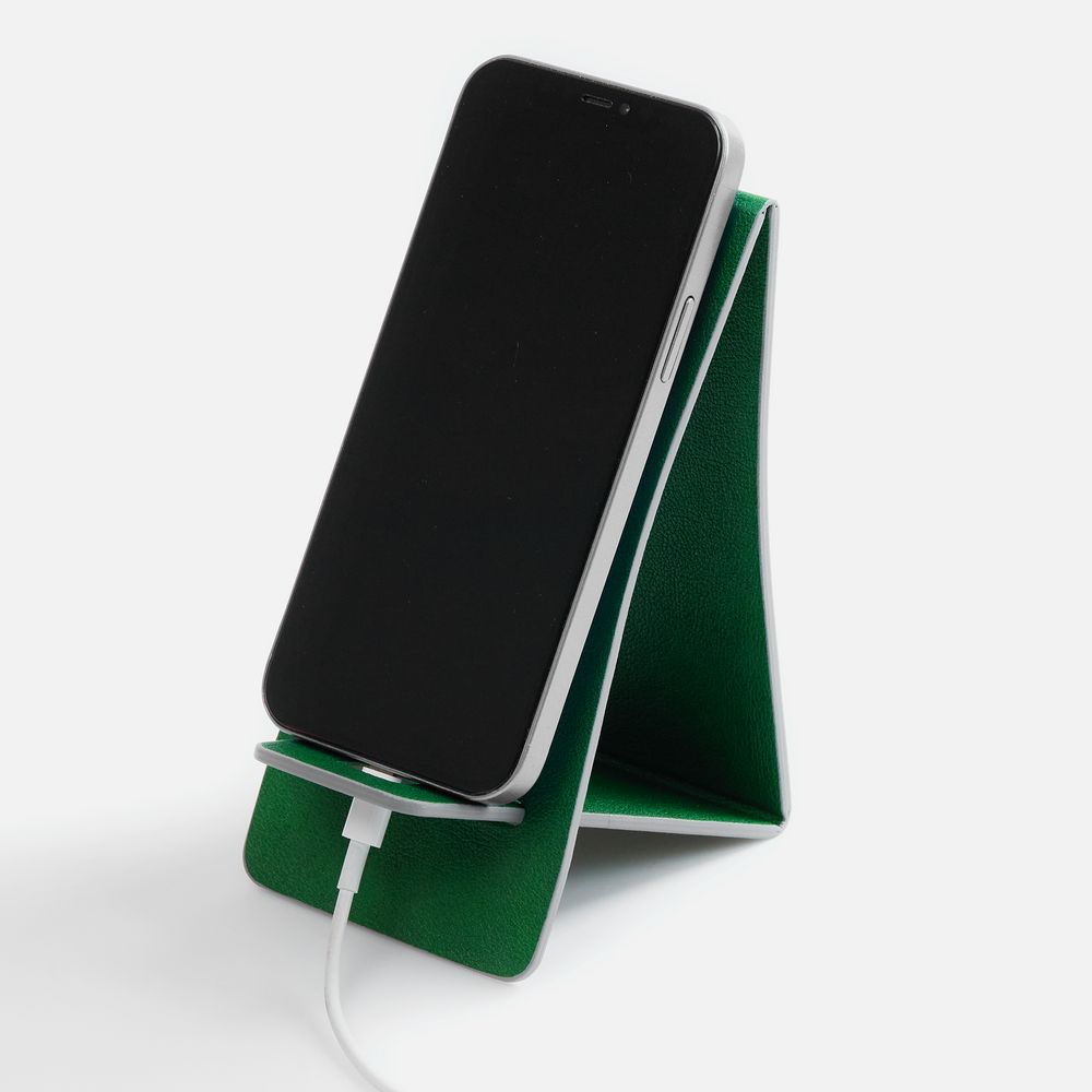 Складная подставка для телефона с вырубкой под шнур зарядного устройства. Выполнена из материала Petrus. Компактный размер и складная конструкция подставки позволят брать ее с собой в командировки, на встречи или использовать дома.