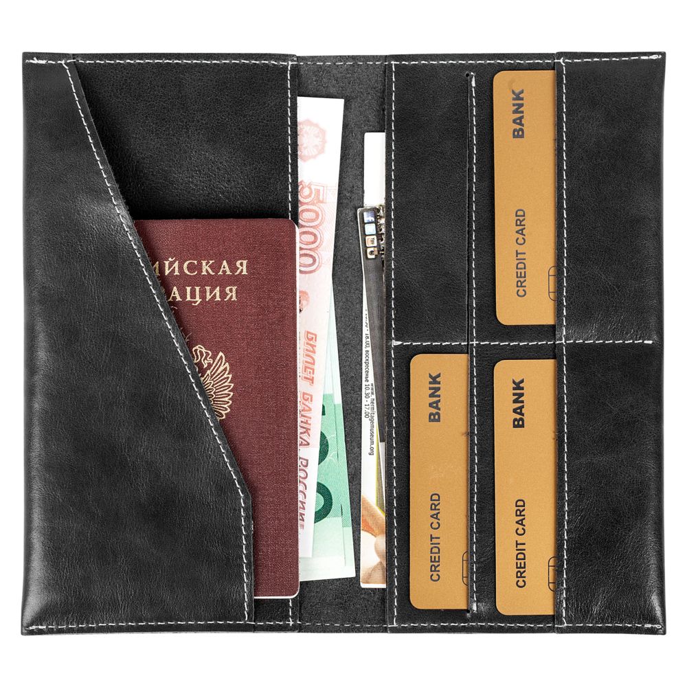 • Два больших отделения для купюр и документов