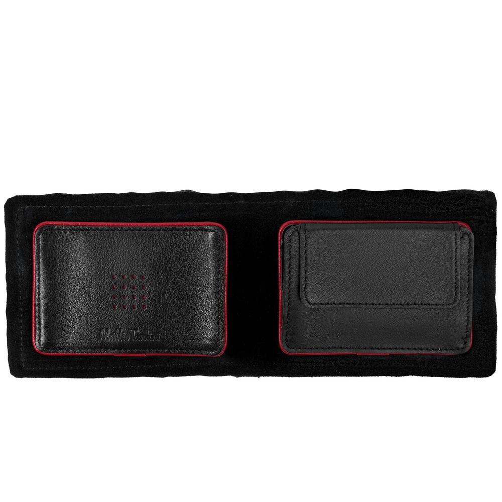 Натуральная кожа глубокого черного цвета и яркая контрастная окантовка — как страстная южная натура, сдержанная рамками условных приличий.