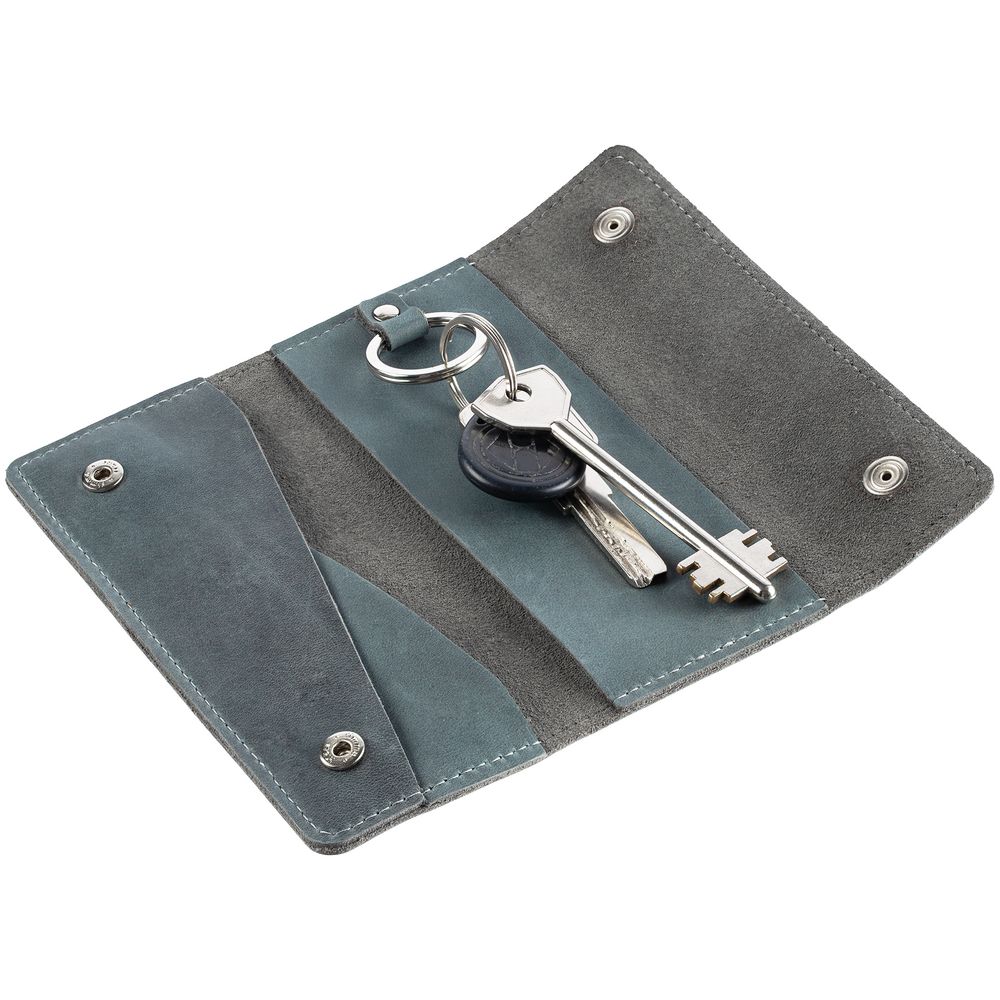 Внутри кольцо для крепления ключей длиной до 12 см. Застегивается на кнопки.