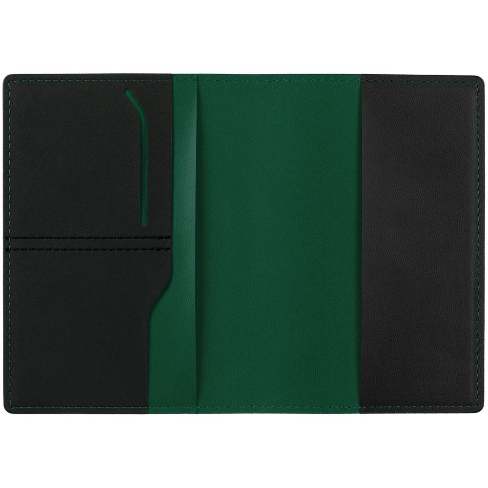 Серия личных аксессуаров Multimo — удачный вариант функционального персонального подарка. Приятная на ощупь искусственная кожа, продуманный дизайн, лаконичная контрастная отделка и выигрышная цветовая гамма. Обложка выполнена из материала Soft Touch Pearl, черный АА и срез обложки окрашен в цвет внутреннего материала Latte, зеленый FF. Имеет основное отделение для паспорта и 2 отделения для визиток или кредитных карт.