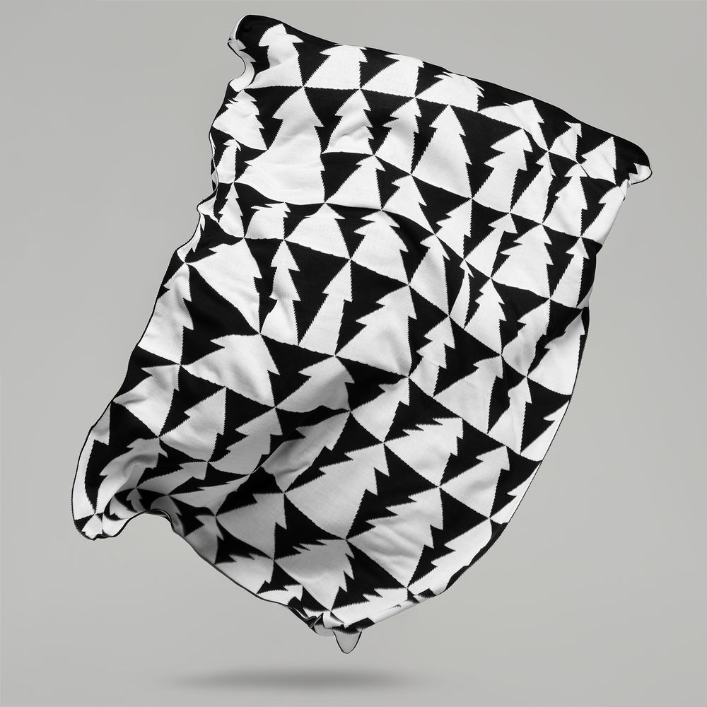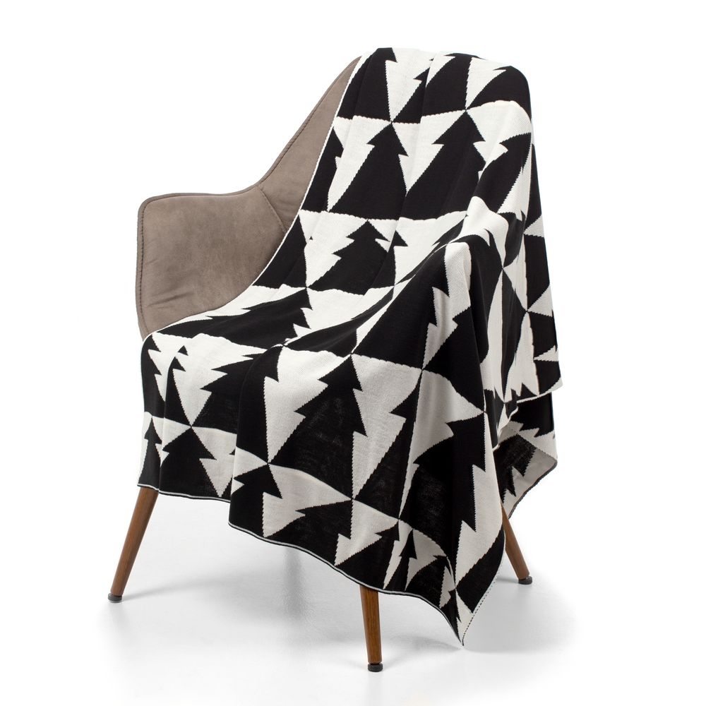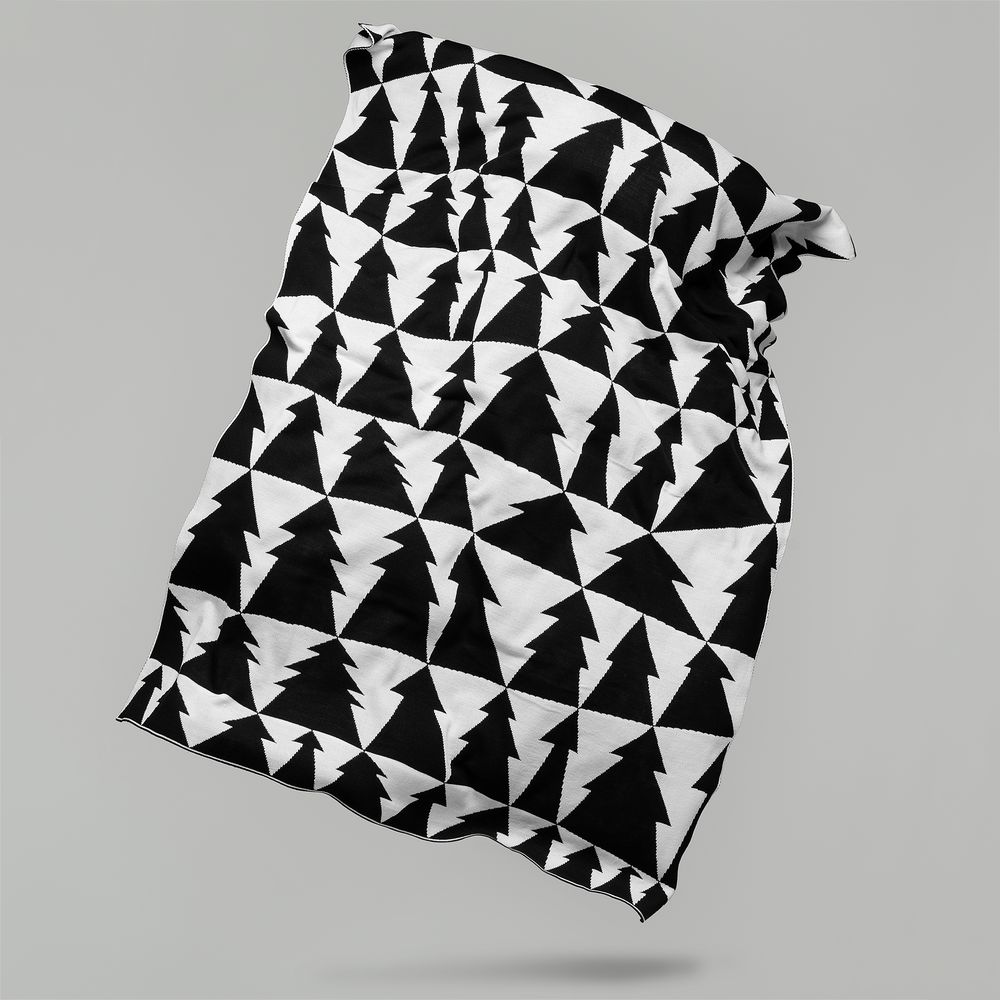 Мягкий графичный плед в скандинавском стиле «Танцующий лес» настраивает на позитив: жизнь складывается не из ровных черно-белых полос, а причудливых забавных фигур. А под Новый год почему бы этим фигурам не стать елками?