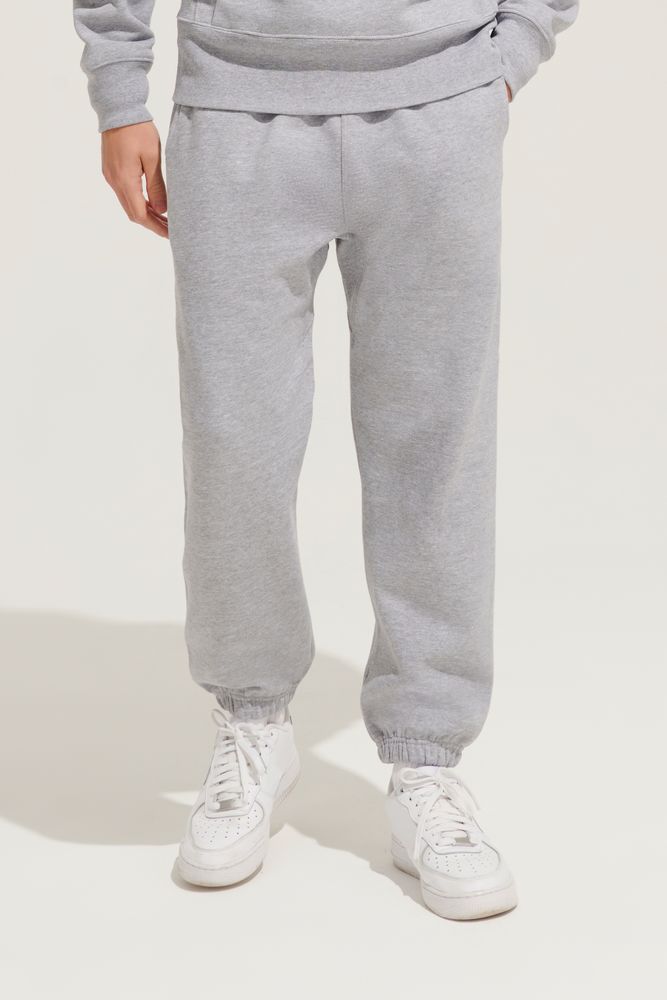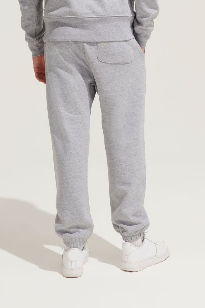 Cвободные брюки-джоггеры унисекс из хлопка и переработанного полиэстера. Эластичный пояс с утягивающим шнуром. Два боковых кармана, задний накладной карман. Резинка по низу изделия. Внутренняя сторона с начесом. У брюк отсутствует внешний боковой шов, что позволяет наносить изображение даже сбоку.