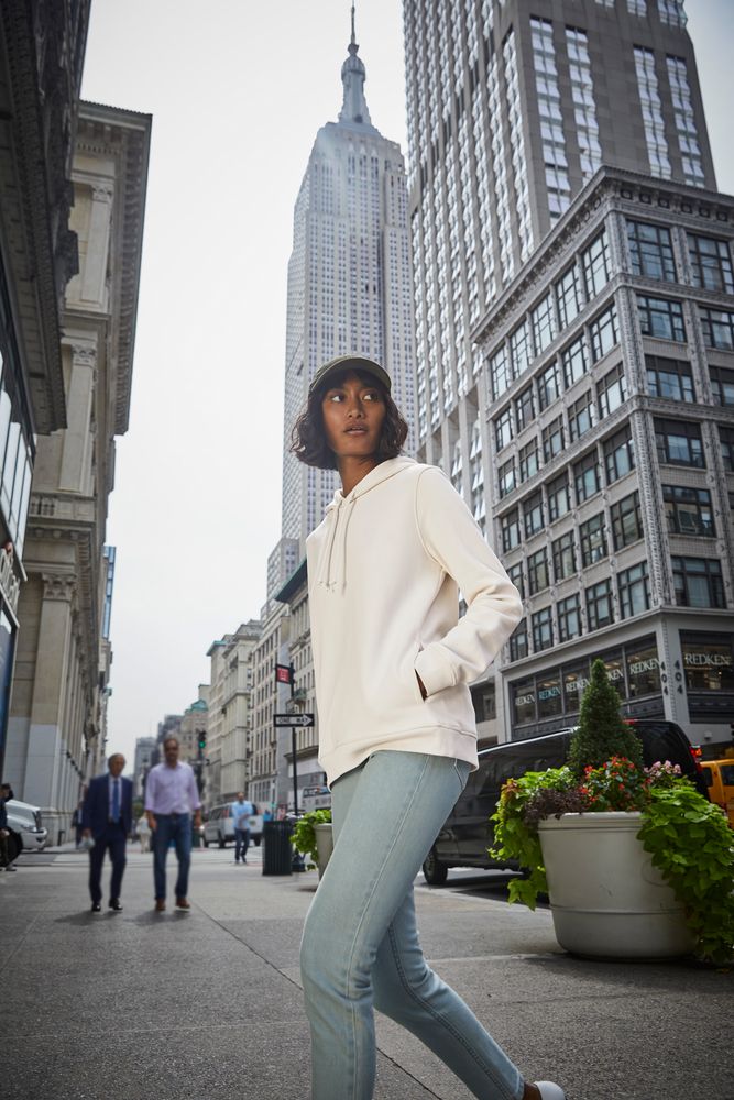 Толстовки линейки Organic изготовлены из органического хлопка и переработанного полиэстера (для изготовления каждой толстовки переработано 5 пластиковых бутылок объемом 1,5 л). Женская толстовка с капюшоном и втачными карманами.