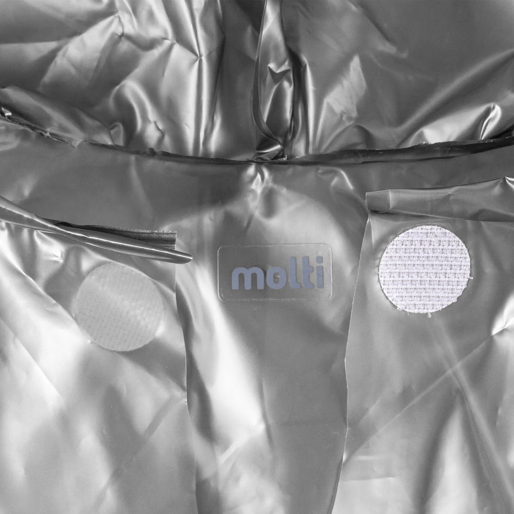 Логотип Molti может быть размещен на дождевике или упаковке. Варианты представлены на фото.