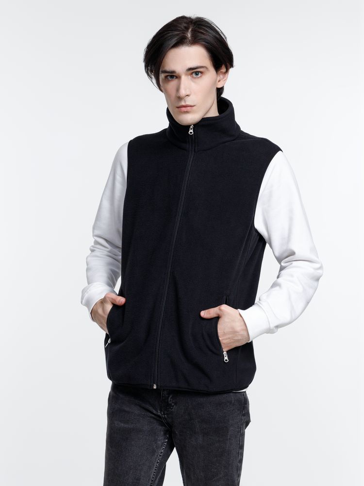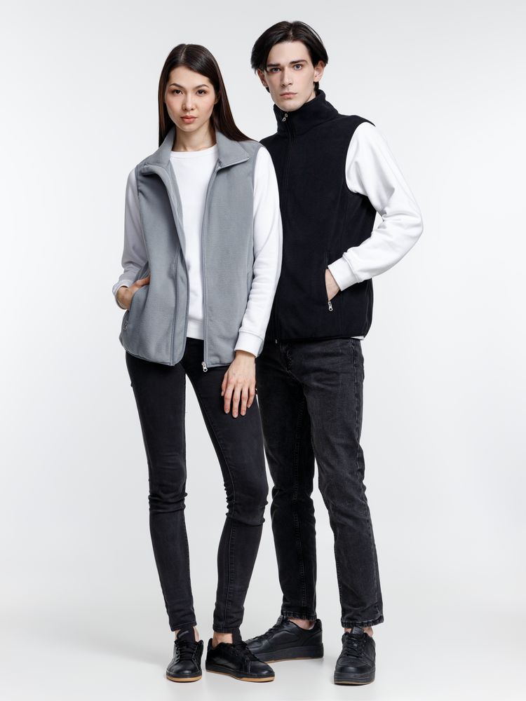 Флис — это плотная и одновременно легкая ткань, которая надежно сохраняет тепло, пропускает воздух и быстро сохнет, поэтому изделия из этого мягкого материала отлично подходят для среднего слоя или зимней экипировки. Флисовый жилет унисекс на молнии.