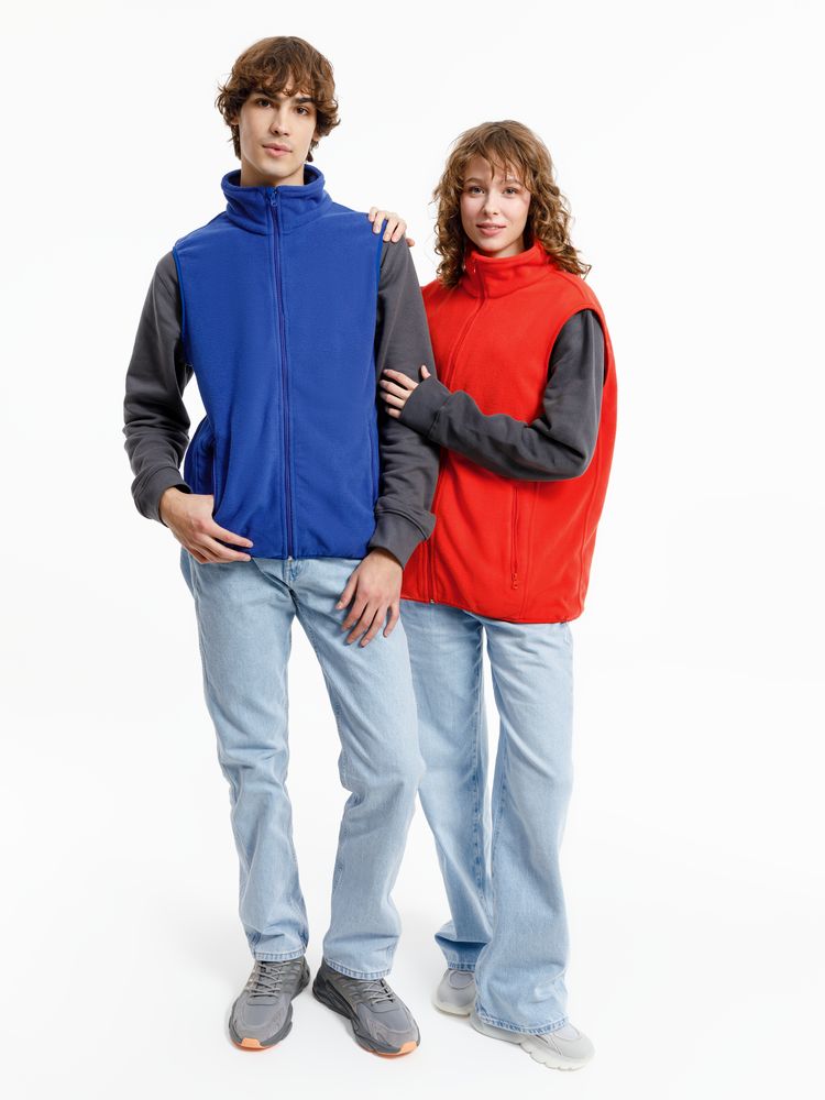 Флис — это плотная и одновременно легкая ткань, которая надежно сохраняет тепло, пропускает воздух и быстро сохнет, поэтому изделия из этого мягкого материала отлично подходят для среднего слоя или зимней экипировки. Флисовый жилет унисекс на молнии.