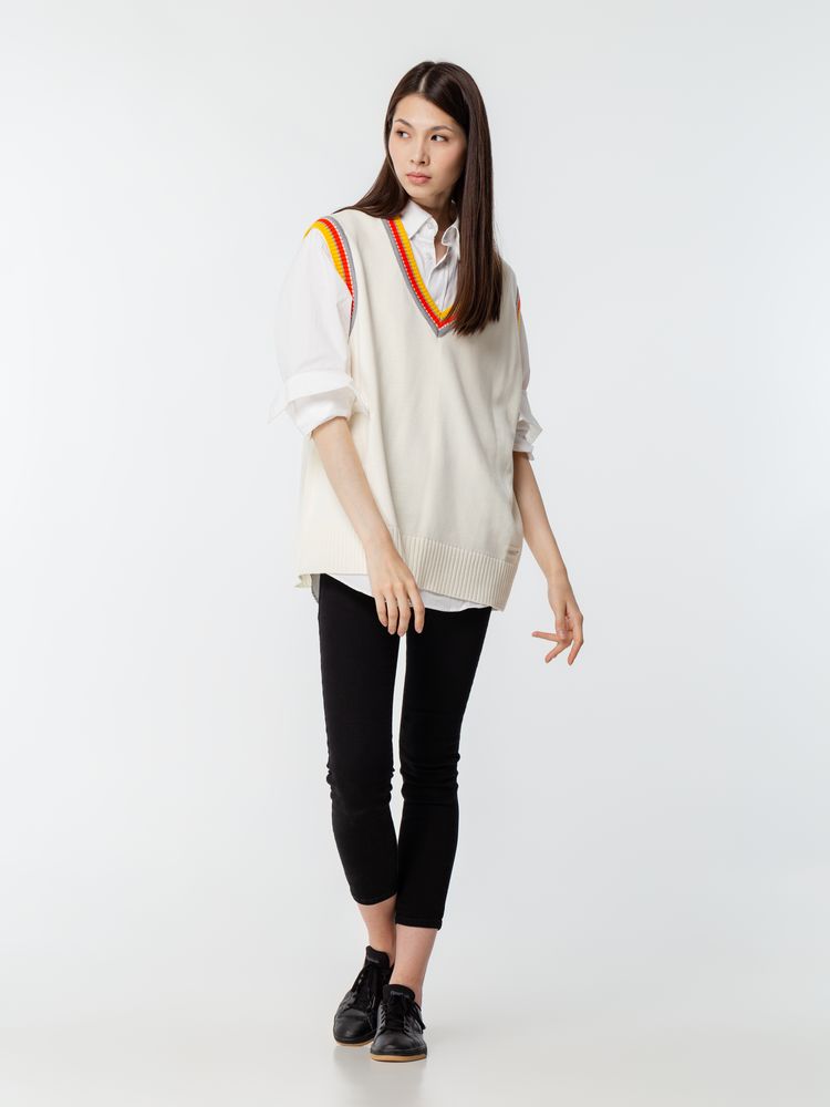 В дизайне жилета Cornell найден идеальный баланс между актуальной уличной модой и нестареющей классикой — элегантностью стиля old money. Неброские базовые цвета, легкий оверсайз и цветовой акцент на неглубоком вырезе создают самодостаточный сдержанный образ уверенного в себе и своем будущем человека. Оверсайз жилет с V-образным вырезом и цветной отделкой.