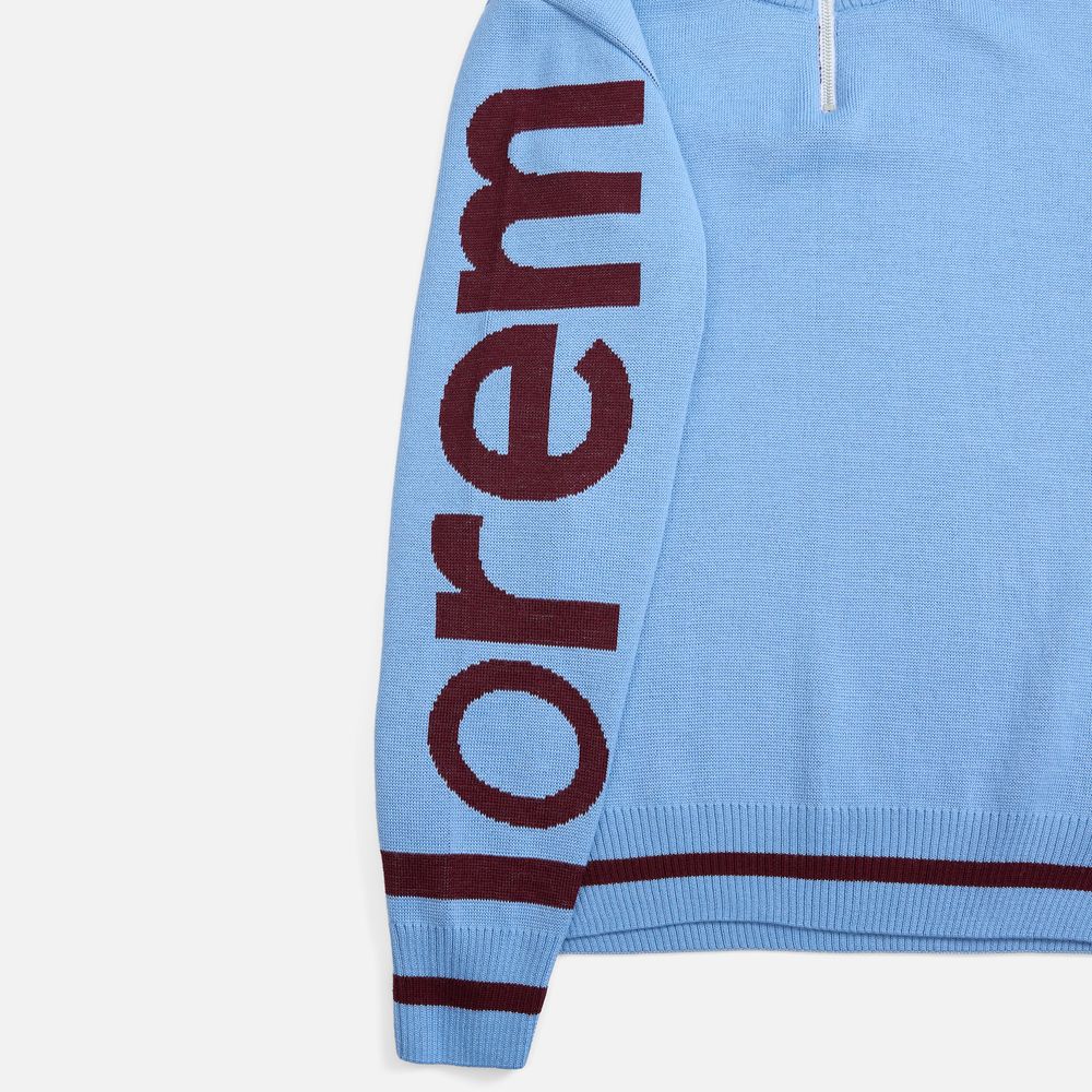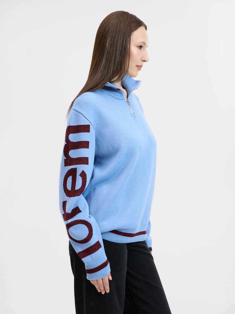 Олимпийка с вывязанным логотипом и индивидуальным рисунком в фирменной цветовой гамме.